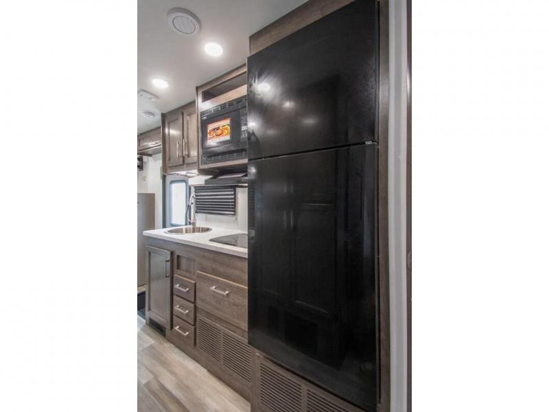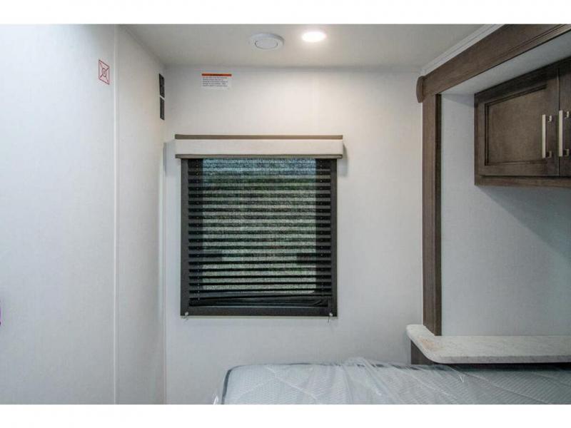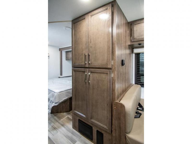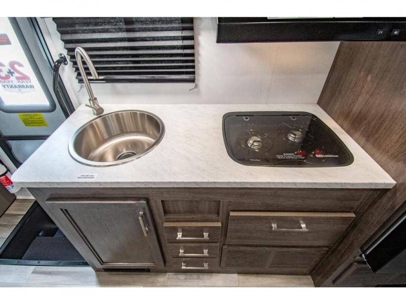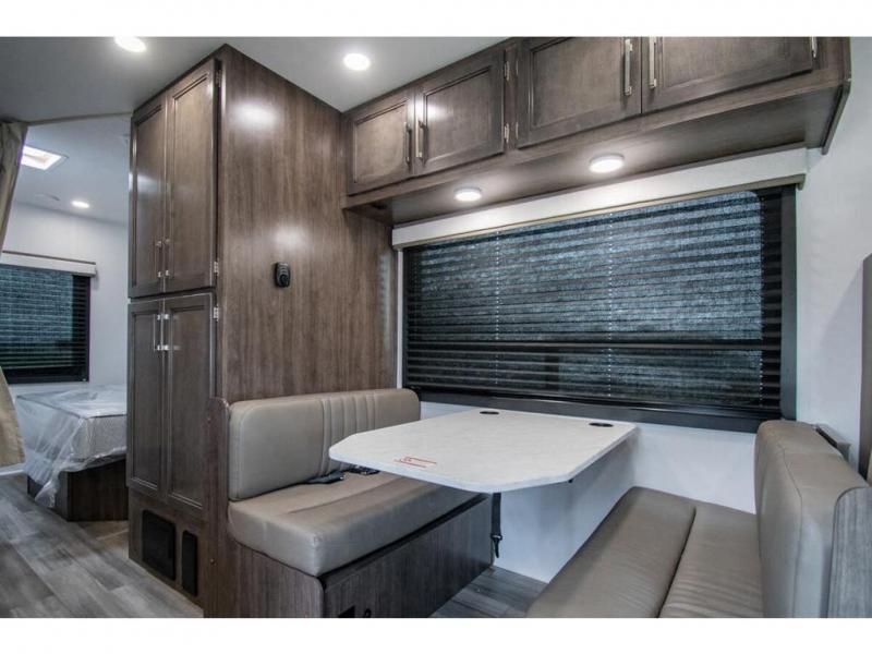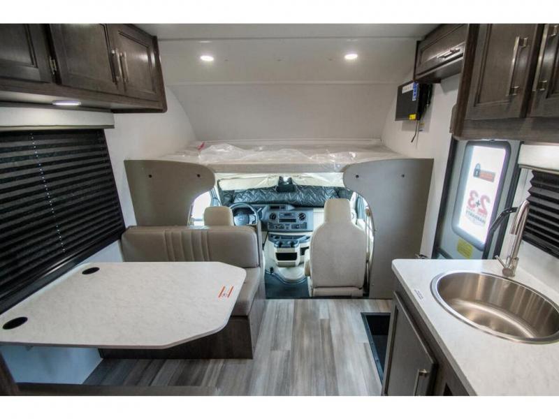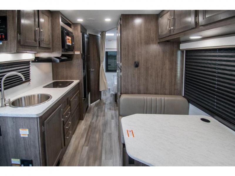 Make your trips complete in this coach that can sleep four to five each night. There is a cab-over bunk with a 750 lb. capacity for guests and an RV queen bed slide out in the rear corner bedroom. The booth dinette can be used to dine at, play games, and even sleep an additional guest or two little ones. A two burner cooktop comes standard in the kitchen, along with a convection microwave, a stainless steel sink, and a 10 cu. ft. refrigerator. You will also appreciate having a full bath on board, and the 13' electric awning outside will provide a place to relax with a cold drink!