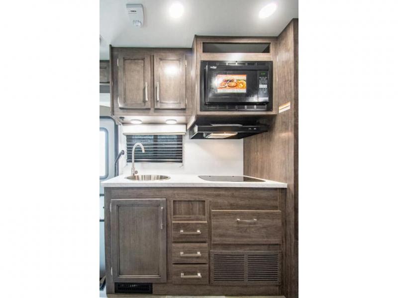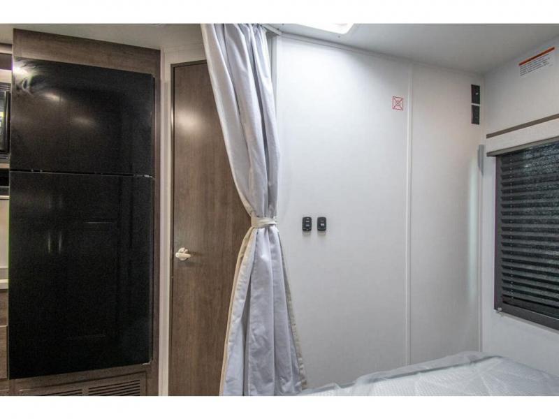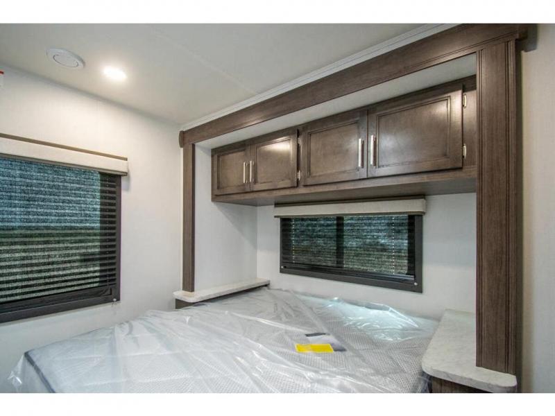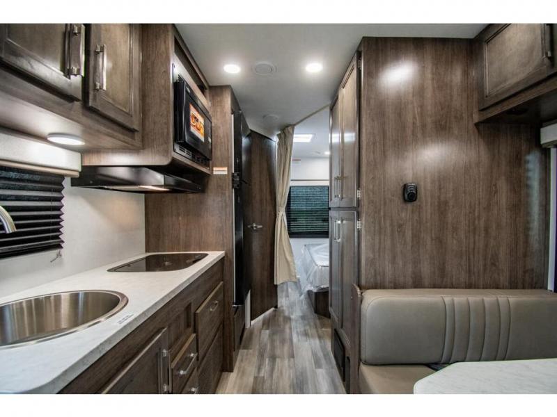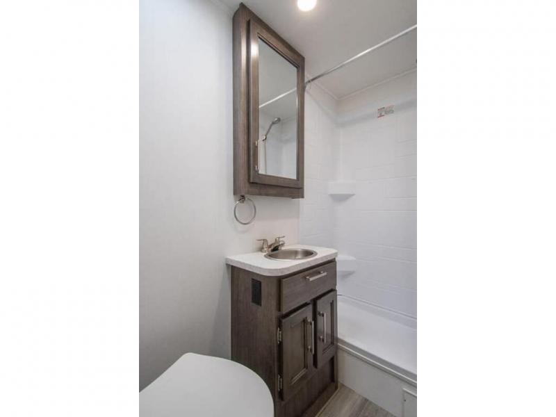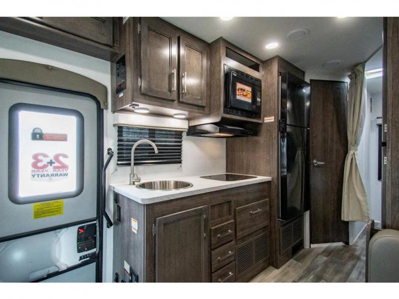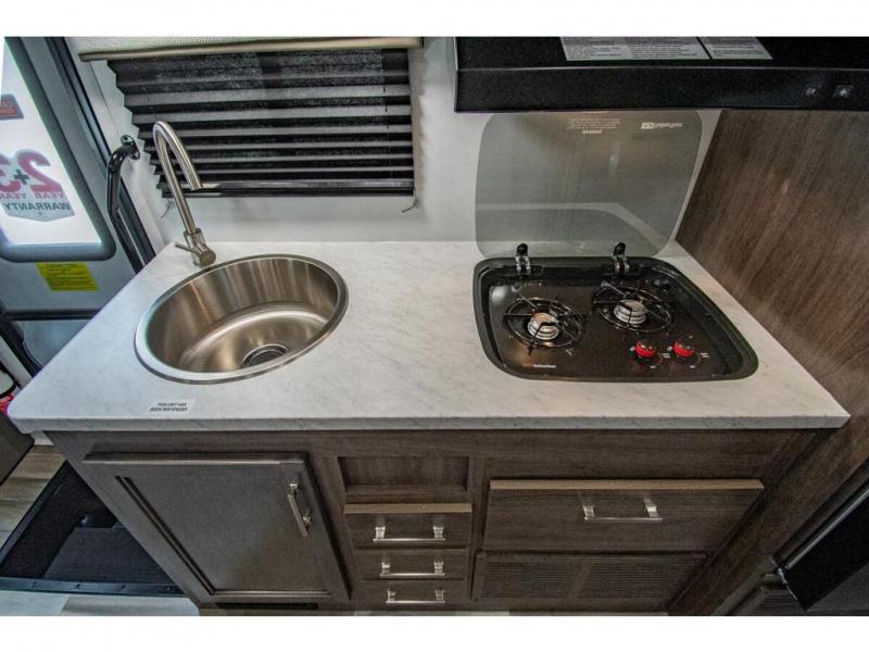 Make your trips complete in this coach that can sleep four to five each night. There is a cab-over bunk with a 750 lb. capacity for guests and an RV queen bed slide out in the rear corner bedroom. The booth dinette can be used to dine at, play games, and even sleep an additional guest or two little ones. A two burner cooktop comes standard in the kitchen, along with a convection microwave, a stainless steel sink, and a 10 cu. ft. refrigerator. You will also appreciate having a full bath on board, and the 13' electric awning outside will provide a place to relax with a cold drink!