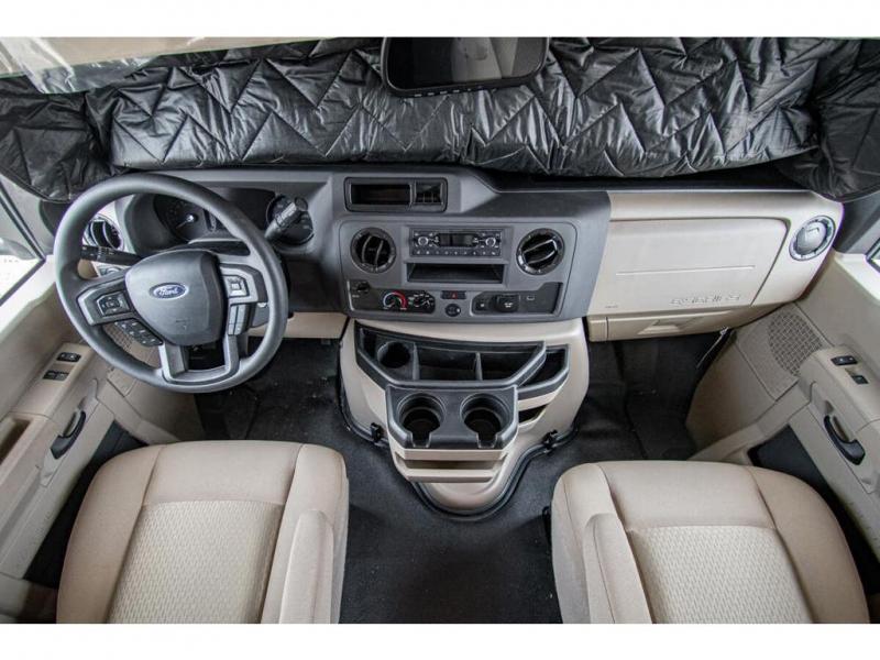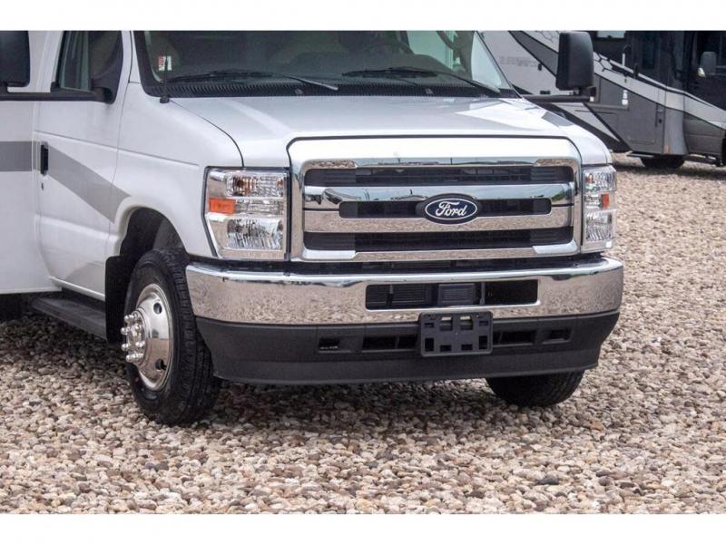 The Odyssey SE Class C gas motorhome by Entegra Coach is constructed with TuffShell vacuum-bond laminated sidewalls, a one-piece, seamless fiberglass front cap, and bead-foam insulation for added durability and strength. Whether you choose a model with a Ford E-350 chassis or Chevy 4500 chassis, you will get a durable coach made to last. The driver will also love the power steering, tilt steering wheel, and auxiliary start switch. The 7' interior ceiling height will provide plenty of space to stretch out and the high-intensity, recessed LED lights will make your space feel more like home. All of your power needs will be met with a 4,000-watt generator and 12V house battery, plus there is a 13.5K BTU A/C and 30K BTU furnace to keep you comfortable all year long. There are a couple additions you might want to add to further customize your Odyssey SE, like the optional automatic hydraulic leveling jacks and the optional 200W solar panel for some off-grid camping!