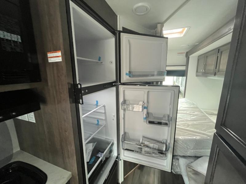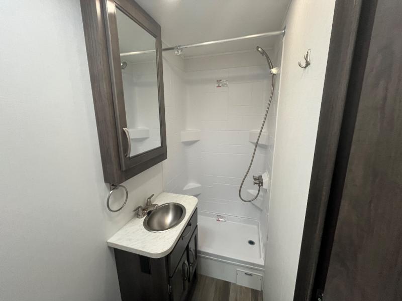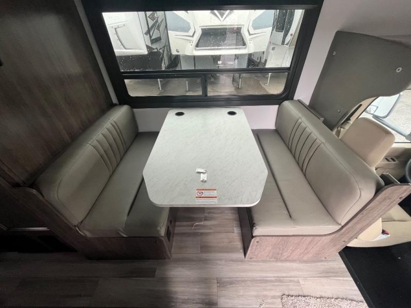 Make your trips complete in this coach that can sleep four to five each night. There is a cab-over bunk with a 750 lb. capacity for guests and an RV queen bed slide out in the rear corner bedroom. The booth dinette can be used to dine at, play games, and even sleep an additional guest or two little ones. A two burner cooktop comes standard in the kitchen, along with a convection microwave, a stainless steel sink, and a 10 cu. ft. refrigerator. You will also appreciate having a full bath on board, and the 13' electric awning outside will provide a place to relax with a cold drink!