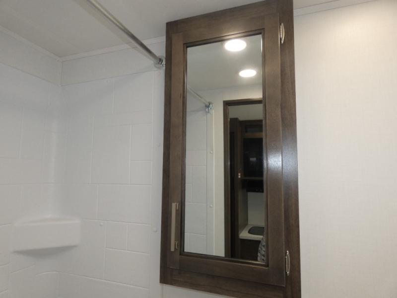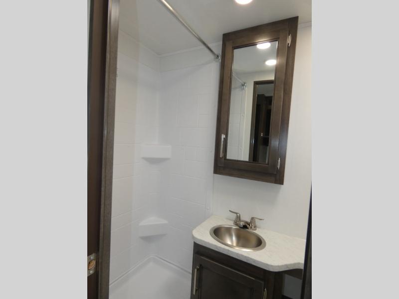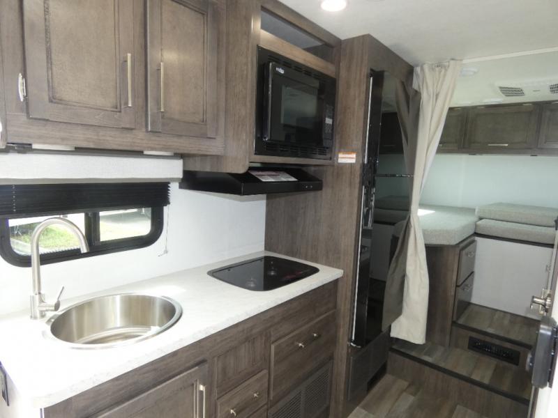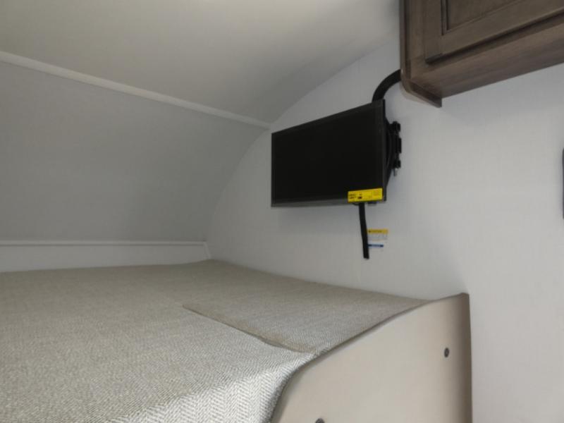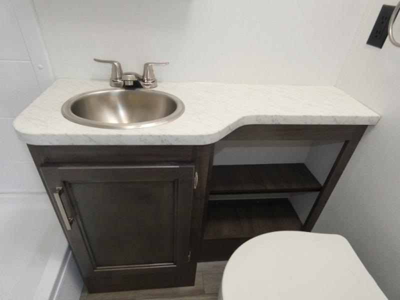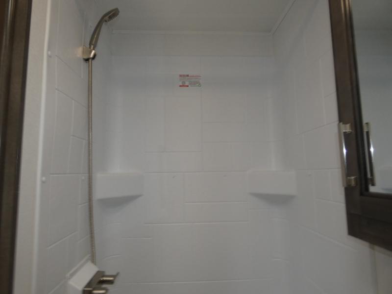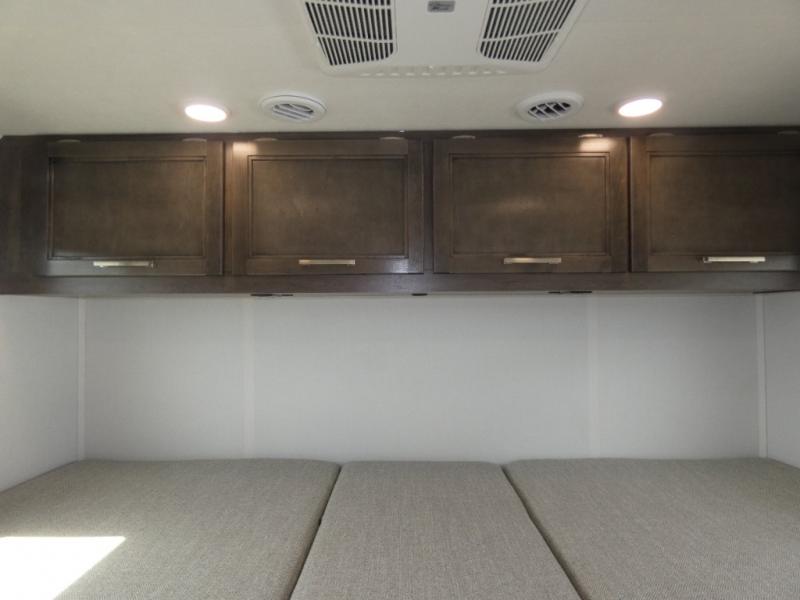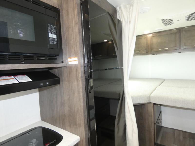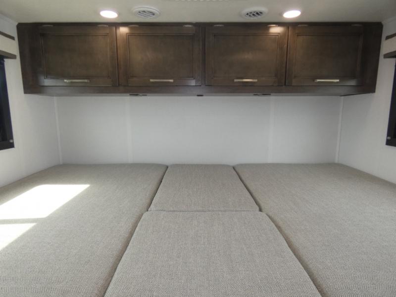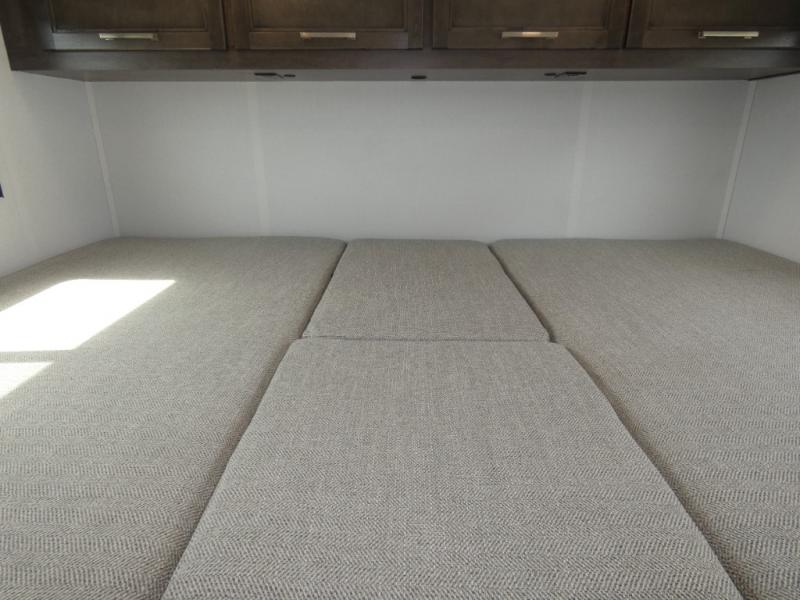 This coach is perfect for traveling with your buddy or honey since there are twin beds that convert to a king-size bed if you choose! There is a large overhead cabinet above the bed for storage, along with cabinets in the kitchen and a medicine cabinet in the bathroom. A 48" bench with a removable table provides a place to enjoy meals or you can eat outdoors under the 16' electric awning. The full kitchen includes a two burner cooktop and convection microwave to cook meals each day, plus a 10 cu. ft. 12V refrigerator for food storage.