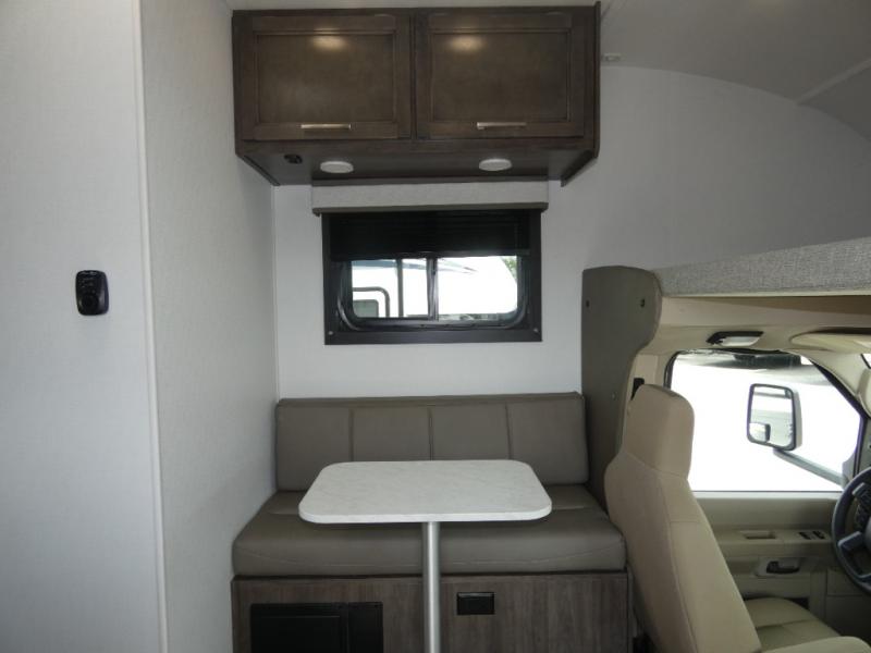 The Odyssey SE Class C gas motorhome by Entegra Coach is constructed with TuffShell vacuum-bond laminated sidewalls, a one-piece, seamless fiberglass front cap, and bead-foam insulation for added durability and strength. Whether you choose a model with a Ford E-350 chassis, you will get a durable coach made to last. The driver will also love the power steering, tilt steering wheel, and auxiliary start switch. The 7' interior ceiling height will provide plenty of space to stretch out and the high-intensity, recessed LED lights will make your space feel more like home. All of your power needs will be met with a 4,000-watt generator and 12V house battery, plus there is a 13.5K BTU A/C and 30K BTU furnace to keep you comfortable all year long.