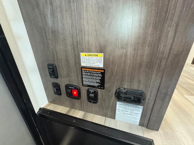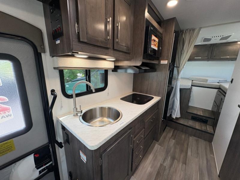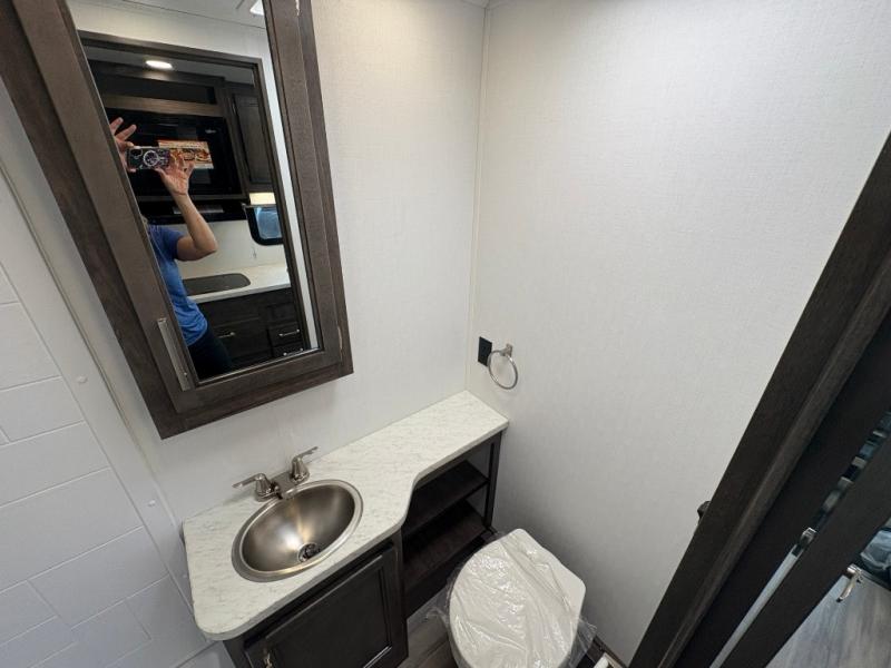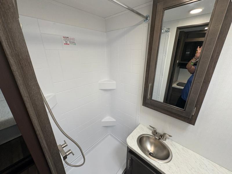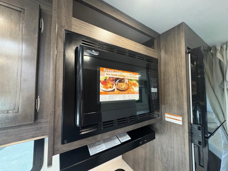 This coach is perfect for traveling with your buddy or honey since there are twin beds that convert to a king-size bed if you choose! There is a large overhead cabinet above the bed for storage, along with cabinets in the kitchen and a medicine cabinet in the bathroom. A 48" bench with a removable table provides a place to enjoy meals or you can eat outdoors under the 16' electric awning. The full kitchen includes a two burner cooktop and convection microwave to cook meals each day, plus a 10 cu. ft. 12V refrigerator for food storage.