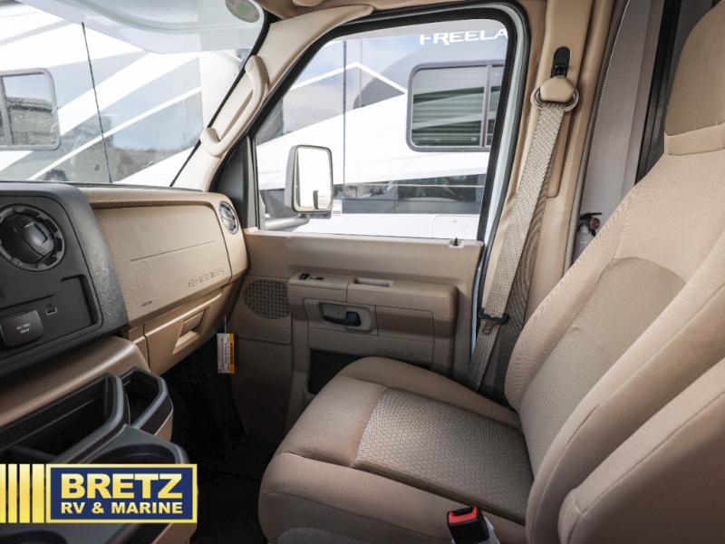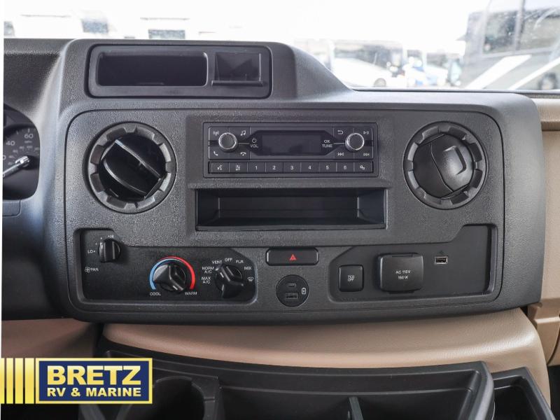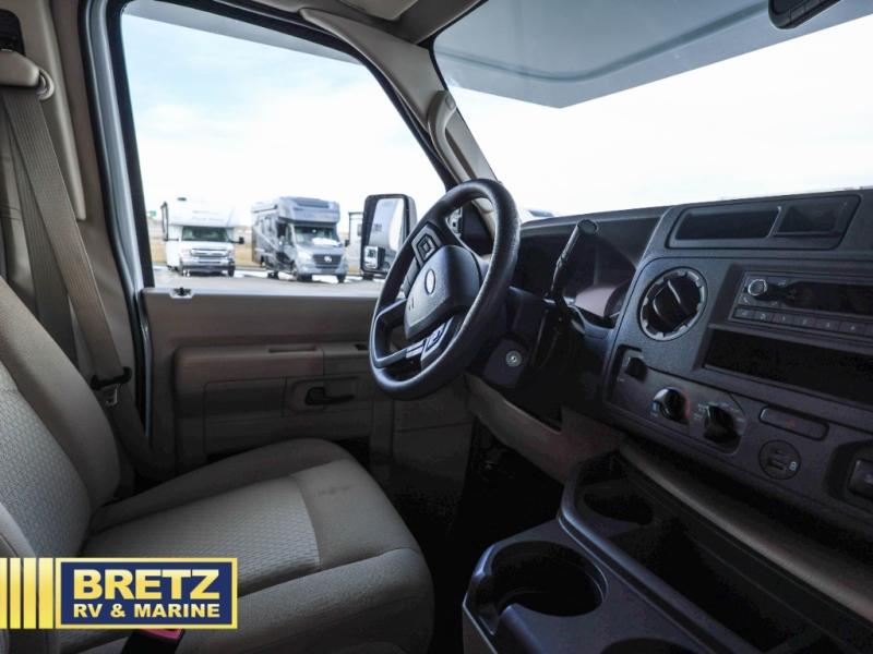 The Odyssey SE Class C gas motorhome by Entegra Coach is constructed with TuffShell vacuum-bond laminated sidewalls, a one-piece, seamless fiberglass front cap, and bead-foam insulation for added durability and strength. Whether you choose a model with a Ford E-350 chassis, Ford E-450 or Chevy 4500 chassis, you will get a durable coach made to last. The driver will also love the power steering, tilt steering wheel, and auxiliary start switch. The 7' interior ceiling height will provide plenty of space to stretch out and the high-intensity, recessed LED lights will make your space feel more like home. All of your power needs will be met with a 4,000-watt generator and 12V house battery, plus there is a 13.5K BTU A/C and 30K BTU furnace to keep you comfortable all year long. There are a couple additions you might want to add to further customize your Odyssey SE, like the optional automatic hydraulic leveling jacks and the optional 200W solar panel for some off-grid camping!