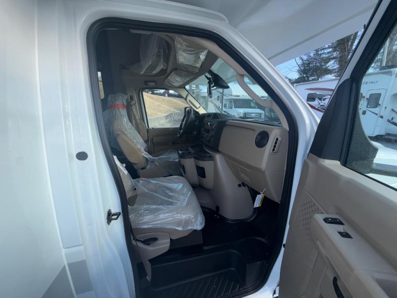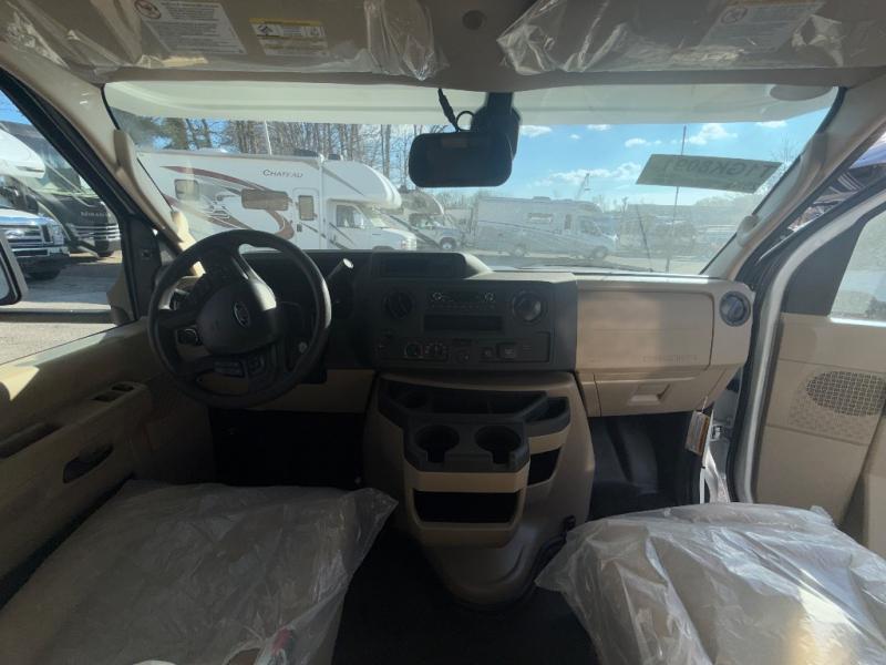 The Odyssey SE Class C gas motorhome by Entegra Coach is constructed with TuffShell vacuum-bond laminated sidewalls, a one-piece, seamless fiberglass front cap, and bead-foam insulation for added durability and strength. Whether you choose a model with a Ford E-350 chassis, Ford E-450 or Chevy 4500 chassis, you will get a durable coach made to last. The driver will also love the power steering, tilt steering wheel, and auxiliary start switch. The 7' interior ceiling height will provide plenty of space to stretch out and the high-intensity, recessed LED lights will make your space feel more like home. All of your power needs will be met with a 4,000-watt generator and 12V house battery, plus there is a 13.5K BTU A/C and 30K BTU furnace to keep you comfortable all year long. There are a couple additions you might want to add to further customize your Odyssey SE, like the optional automatic hydraulic leveling jacks and the optional 200W solar panel for some off-grid camping!