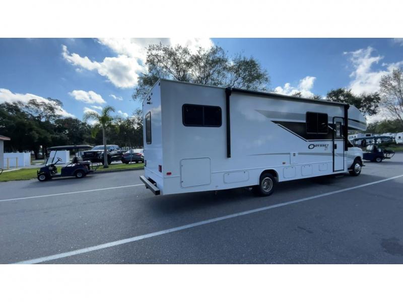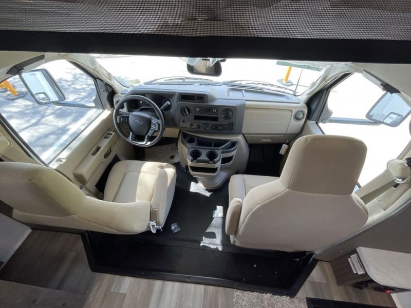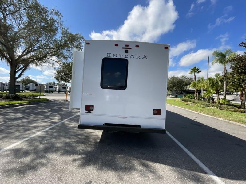 The Odyssey SE Class C gas motorhome by Entegra Coach is constructed with TuffShell vacuum-bond laminated sidewalls, a one-piece, seamless fiberglass front cap, and bead-foam insulation for added durability and strength. Whether you choose a model with a Ford E-350 chassis, Ford E-450 or Chevy 4500 chassis, you will get a durable coach made to last. The driver will also love the power steering, tilt steering wheel, and auxiliary start switch. The 7' interior ceiling height will provide plenty of space to stretch out and the high-intensity, recessed LED lights will make your space feel more like home. All of your power needs will be met with a 4,000-watt generator and 12V house battery, plus there is a 13.5K BTU A/C and 30K BTU furnace to keep you comfortable all year long. There are a couple additions you might want to add to further customize your Odyssey SE, like the optional automatic hydraulic leveling jacks and the optional 200W solar panel for some off-grid camping!