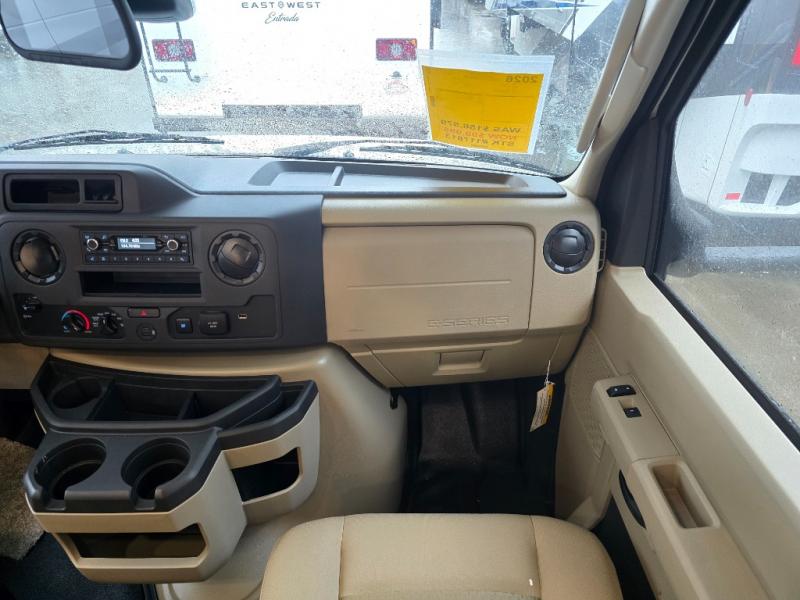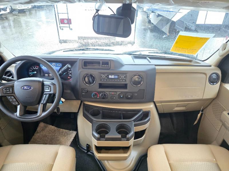 The Odyssey SE Class C gas motorhome by Entegra Coach is constructed with TuffShell vacuum-bond laminated sidewalls, a one-piece, seamless fiberglass front cap, and bead-foam insulation for added durability and strength. Whether you choose a model with a Ford E-350 chassis, Ford E-450 or Chevy 4500 chassis, you will get a durable coach made to last. The driver will also love the power steering, tilt steering wheel, and auxiliary start switch. The 7' interior ceiling height will provide plenty of space to stretch out and the high-intensity, recessed LED lights will make your space feel more like home. All of your power needs will be met with a 4,000-watt generator and 12V house battery, plus there is a 13.5K BTU A/C and 30K BTU furnace to keep you comfortable all year long. There are a couple additions you might want to add to further customize your Odyssey SE, like the optional automatic hydraulic leveling jacks and the optional 200W solar panel for some off-grid camping!