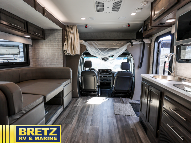 With any Qwest SE Class C diesel motorhome by Entegra Coach, you will enjoy a safe and enjoyable trip each time you take to the road! Each model sits on a durable Mercedes-Benz 3500 chassis with a 170 in. wheelbase and a 9-speed automatic transmission for an overall better driving experience. There is a one-piece, seamless fiberglass front cap to combat leaks, and the TuffShell construction will hold up over time. The driver will appreciate the 7" integrated Mercedes-Benz MBUX infotainment center that includes Apple CarPlay and Android Auto so they can navigate the road like a pro, plus there are backup and side-view cameras for easy parking. You will also appreciate an exterior utility center, an outside shower, electric stabilizer jacks, and many more exterior conveniences. Head inside to find LED-lit pressed countertops, decorative kitchen backsplash, pleated blackout shades for added privacy, and high-intensity LED ceiling lights to keep your space bright and open.