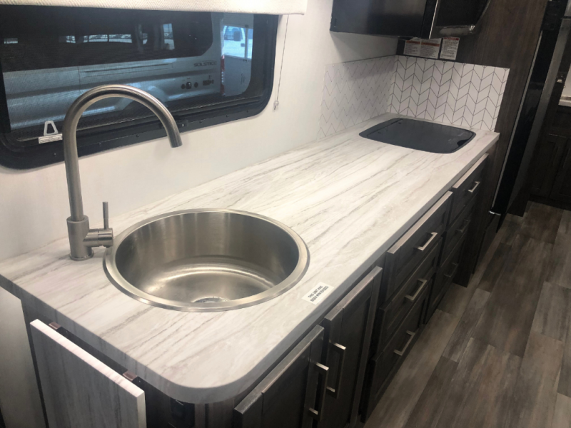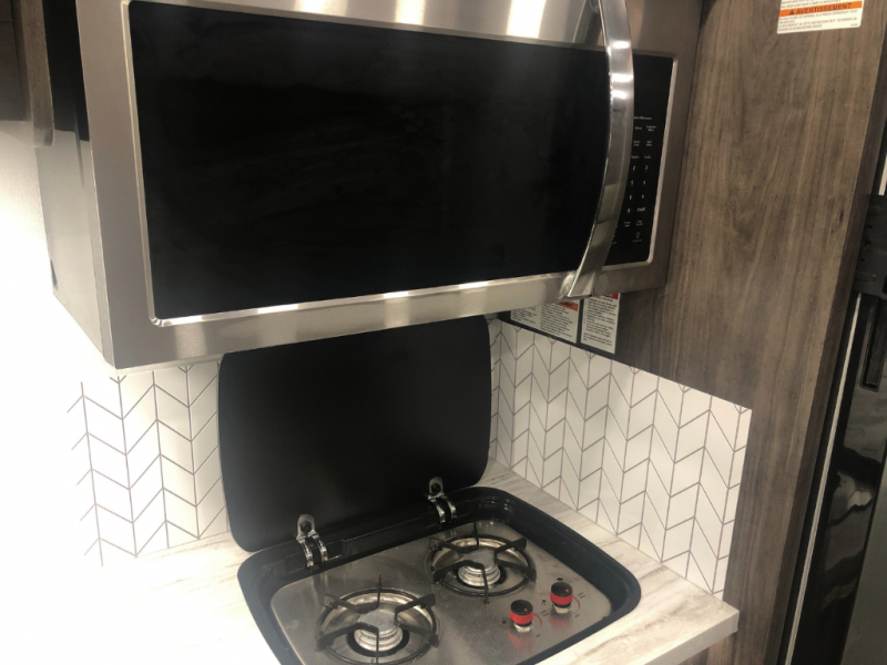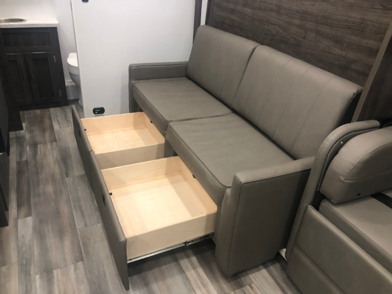 You're going to love every minute spent in this coach with a full-wall slide out! The full rear bath includes a 24" x 32" shower with decorative surround and skylight, plus a stainless steel sink and a wardrobe to keep clean towels close by. A booth dinette and RV queen Murphy bed will provide seating and sleeping space, along with the overhead bunk with a 750 lb. capacity. The swivel captain's seats can also become a part of the living area seating once you're parked! In the morning, you can whip up breakfast on the two burner drop-in cooktop or in the convection microwave, and there is a 12V USB charging station in the dinette area if you need to charge your phone before heading out for the day. After a day outdoors, you might just want to stay outside to relax under the 14' electric awning with LED lights! You also have a couple options with this model, including a theater seating option in place of the dinette, and an entertainment center with overhead storage option in place of the overhead bunk!