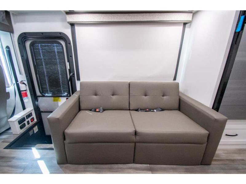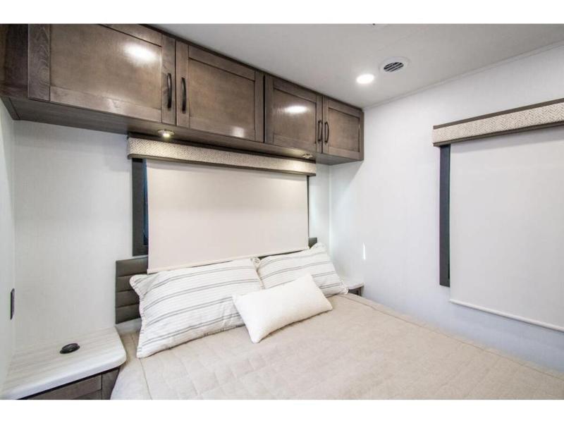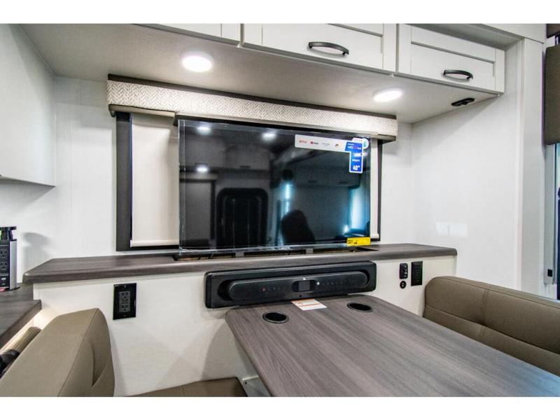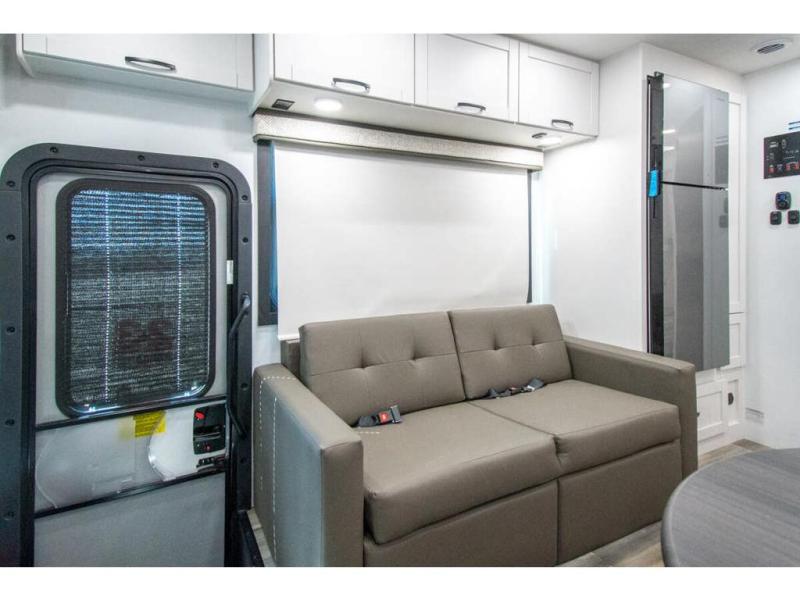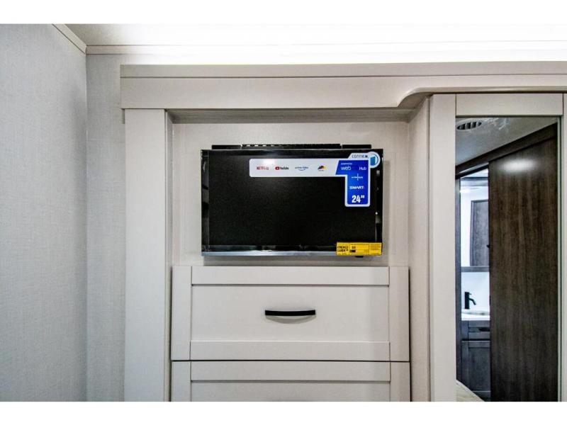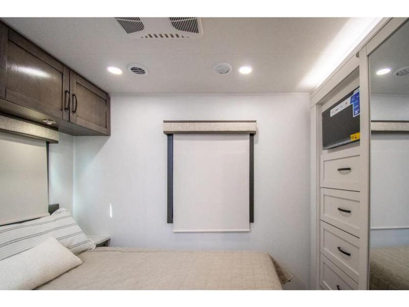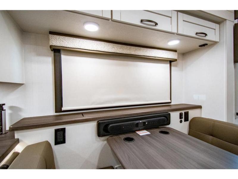 Enjoy a full weekend of excellent amenities in this Vision Class A gas motorhome! There is enough sleeping space for the whole crew with a set of 28" x 70" bunk beds, an RV queen bed, booth dinette, and 68" jack-knife sofa. If you're needing more sleeping space, just add the optional drop-down bunk above the cab! The dual-entry bathroom can be accessed from the main living area as well as the rear bedroom which adds more convenience. There is a Sony infotainment center with Apple CarPlay and Android Auto in the cockpit to help you as you drive, and you'll also find the backup and sideview cameras to be useful when you're parking. A 23' electric awning will protect you while you're outside, and the exterior LED HDTV will be perfect for movies outdoors!
