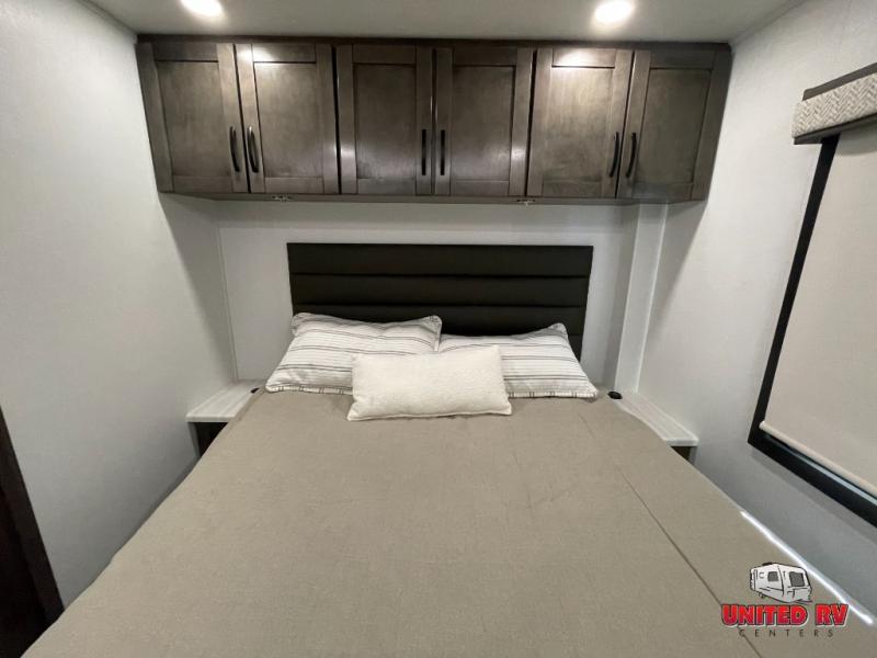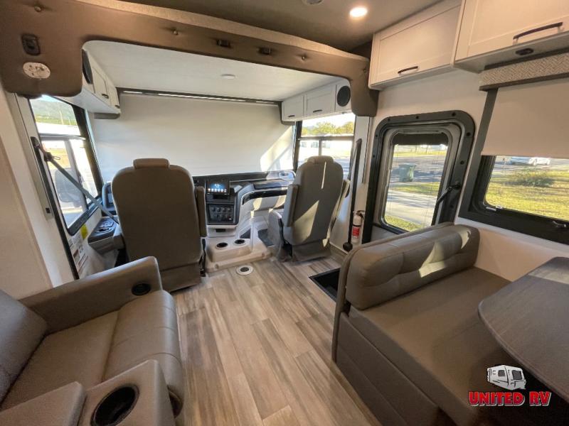 This Vision Class A gas motorhome has excellent interior living space with a full-wall slide! You'll fully enjoy the kitchen and the amenities it provides, like a residential-size microwave, a 10 cu. ft. 12V refrigerator, a Furrion all-in-one cooktop and oven, and a pantry. The 68" jack-knife sofa and booth dinette offer you lounging space after a full day of traveling, and the 39" LED HD Smart TV offers you some entertainment when you don't want to be active anymore. The exterior portion of this coach is also excellently appointed with an outdoor kitchen, exterior entertainment center with LED HD Smart TV, radio, and speakers, and a 23' electric awning with LED lights. You also have great choices of options for this coach with the optional theater seating, LED HDTV in the bedroom, or drop-down overhead cab bunk.