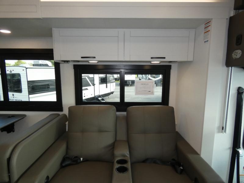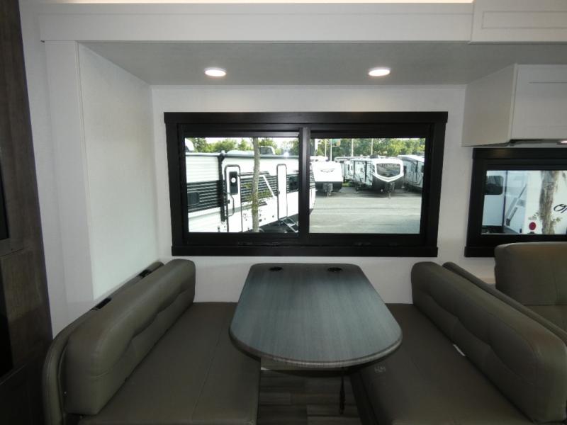 What a fun time you'll have exploring, socializing, and venturing out to new destinations in this Vision XL Class A gas motorhome! There is plenty of space on the interior to spread out and relax with the full-wall slide and the opposing slide in the living area, and you will be able to invite friends in to hang out since you can offer them seating on the 42" x 70" booth dinette, 60" theater sofa, and 60" tri-fold sofa. Play a group game, or put on the football game with the 50" LED Smart TV on lift. After you've entertained everyone, you can retire to your own RV king bed back in the private bedroom. And you can even invite your friends to stay the night if you want because the dinette and sofa will provide some extra sleeping space.