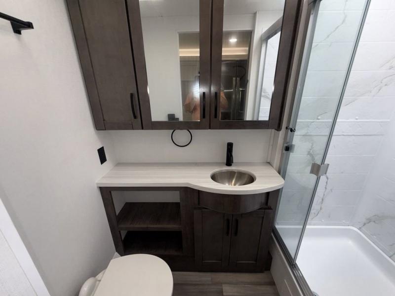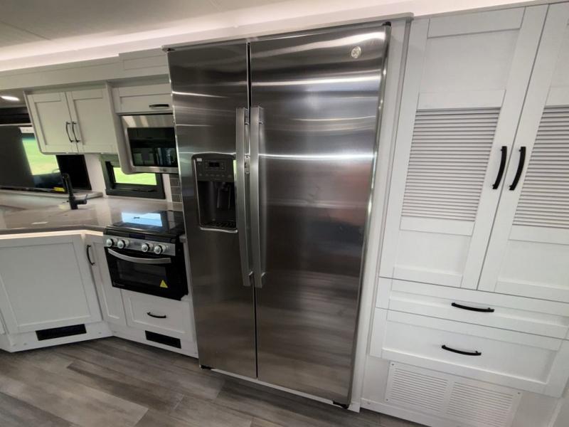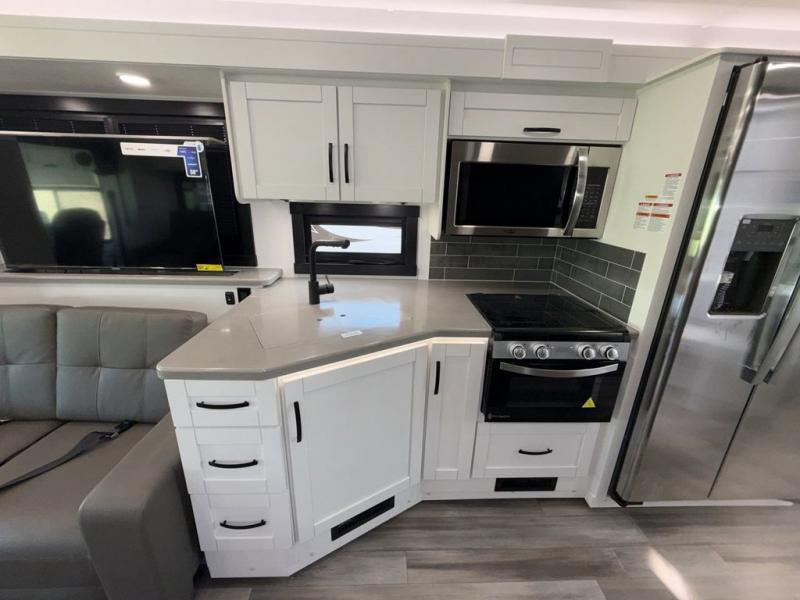 What a fun time you'll have exploring, socializing, and venturing out to new destinations in this Vision XL Class A gas motorhome! There is plenty of space on the interior to spread out and relax with the full-wall slide and the opposing slide in the living area, and you will be able to invite friends in to hang out since you can offer them seating on the 42" x 70" booth dinette, 60" theater sofa, and 60" tri-fold sofa. Play a group game, or put on the football game with the 50" LED Smart TV on lift. After you've entertained everyone, you can retire to your own RV king bed back in the private bedroom. And you can even invite your friends to stay the night if you want because the dinette and sofa will provide some extra sleeping space.