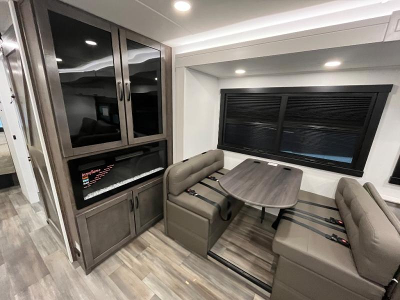 What a fun time you'll have exploring, socializing, and venturing out to new destinations in this Vision XL Class A gas motorhome! There is plenty of space on the interior to spread out and relax with the full-wall slide and the opposing slide in the living area, and you will be able to invite friends in to hang out since you can offer them seating on the 42" x 70" booth dinette, 60" theater sofa, and 60" tri-fold sofa. Play a group game, or put on the football game with the 50" LED Smart TV on lift. After you've entertained everyone, you can retire to your own RV king bed back in the private bedroom. And you can even invite your friends to stay the night if you want because the dinette and sofa will provide some extra sleeping space.