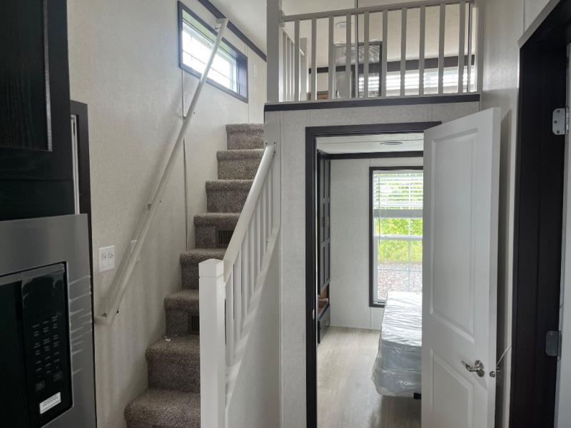 Make your dreams come true by owning this park model to enjoy with your family and friends on weekends, long-vacations or maybe full-time. You will love the beautiful view of your surroundings through the patio door as you stand at the mobile island preparing dinner. Since there is also a second entry door into this unit, your view won't be interrupted when someone needs to get in and out. With a loft above the rear bedroom, you have additional space to host overnight guests or visiting family, and the full bathroom with its residential ceramic commode and sink will be extremely useful for staying clean throughout your stay.