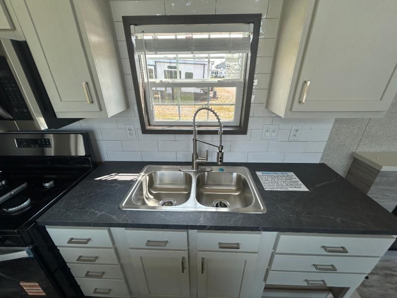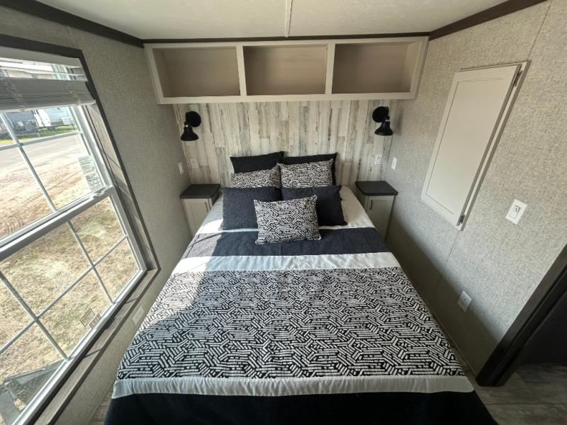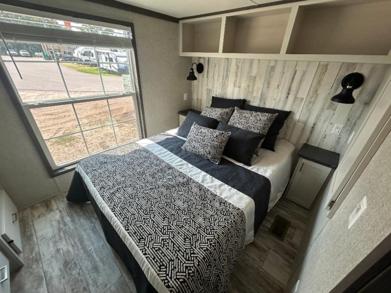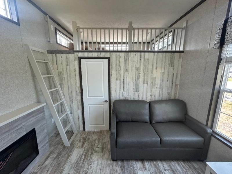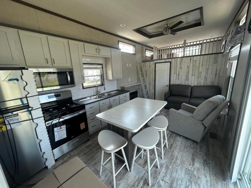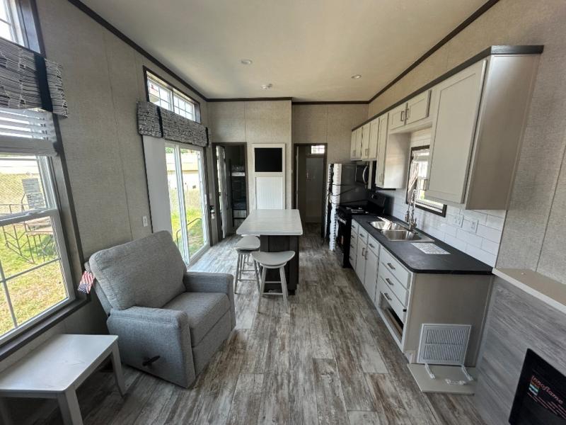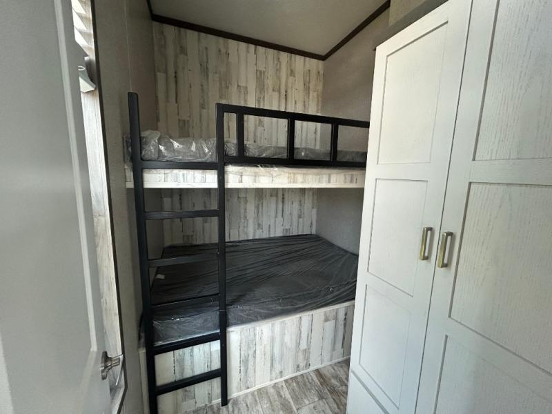 Head out to your park model today for some rest and relaxation! Whether you're lounging together in the central living area in front of the 54" floating entertainment center, or you're getting ready for bed and brushing your teeth with the residential ceramic sink in the rear bathroom, you will appreciate all of the many wonderful features that come standard in this model. Even bed time will be fun with the set of double-size bunks that are located in the rear private bunkhouse. You might even like to add the optional stacked washer/dryer option, and there are more you can choose for your specific needs.