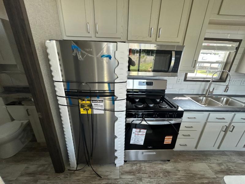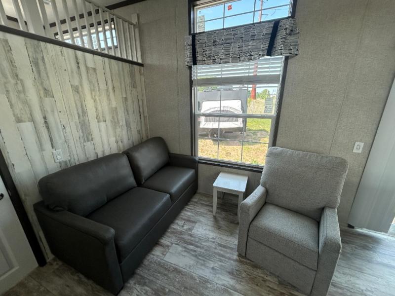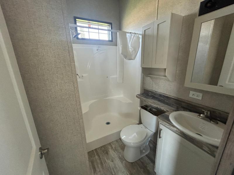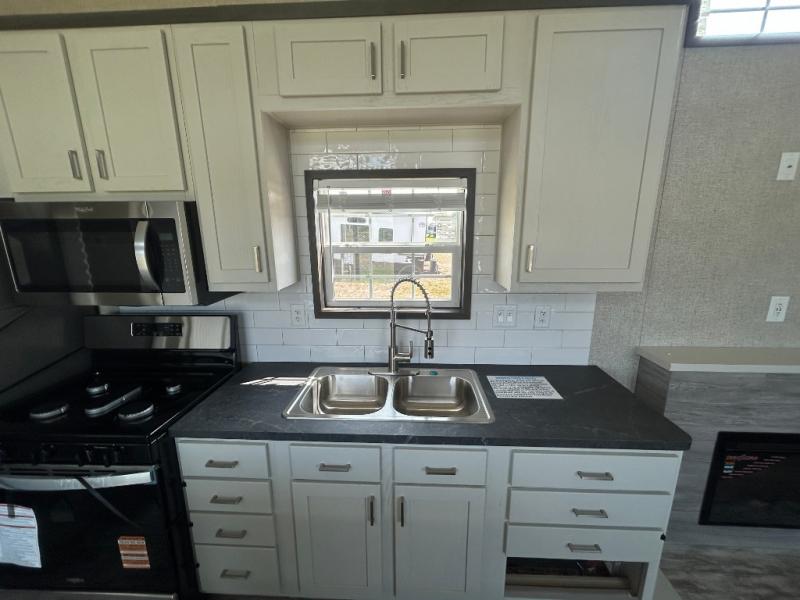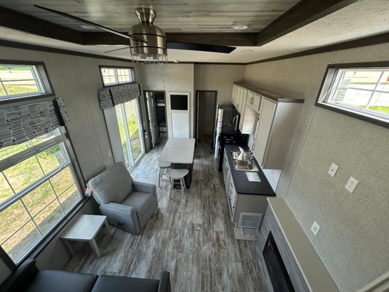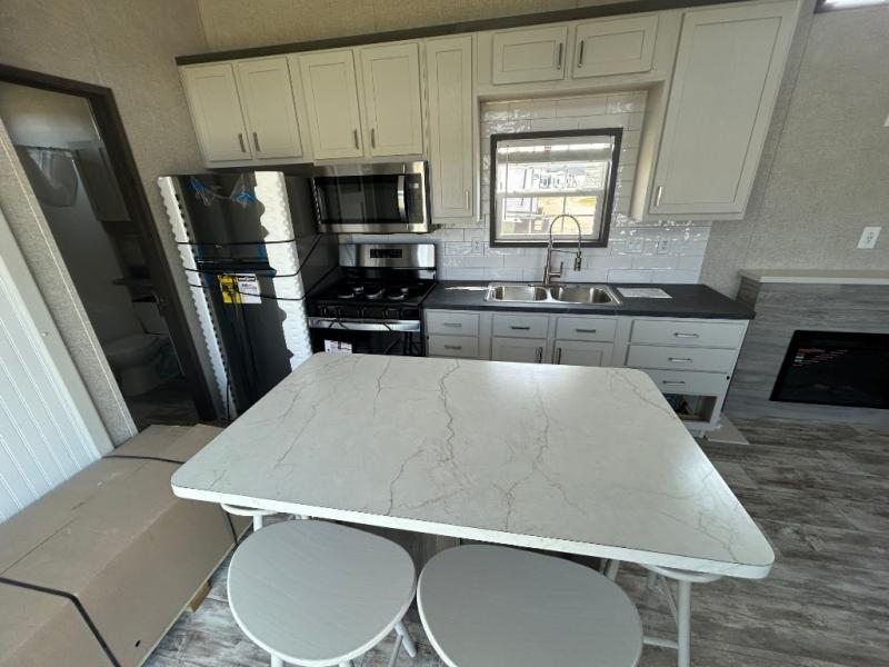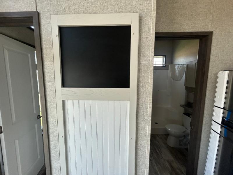 Head out to your park model today for some rest and relaxation! Whether you're lounging together in the central living area in front of the 54" floating entertainment center, or you're getting ready for bed and brushing your teeth with the residential ceramic sink in the rear bathroom, you will appreciate all of the many wonderful features that come standard in this model. Even bed time will be fun with the set of double-size bunks that are located in the rear private bunkhouse. You might even like to add the optional stacked washer/dryer option, and there are more you can choose for your specific needs.