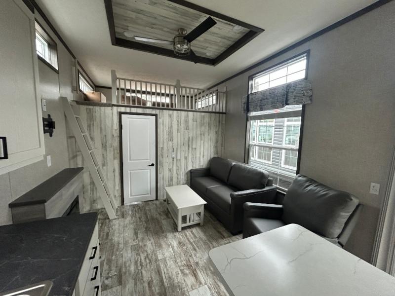Head out to your park model today for some rest and relaxation! Whether you're lounging together in the central living area in front of the 54" floating entertainment center, or you're getting ready for bed and brushing your teeth with the sink in the rear bathroom, you will appreciate all of the many wonderful features that come standard in this model. Even bed time will be fun with the set of double-size bunks that are located in the rear private bunkhouse. You might even like to add the optional stacked washer/dryer option, and there are more you can choose for your specific needs.