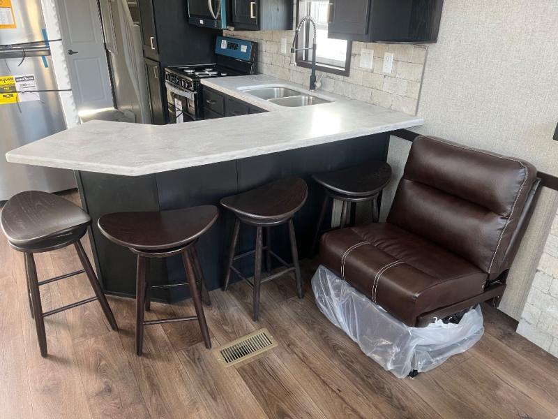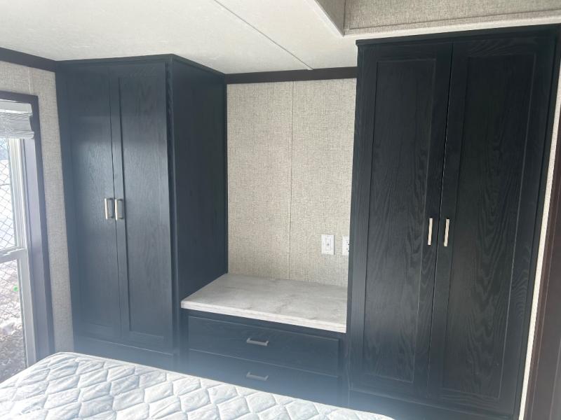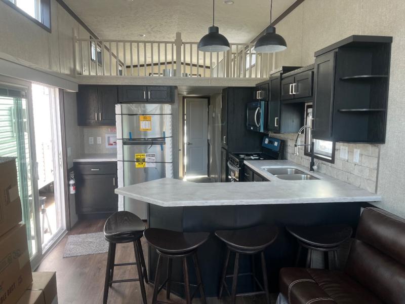 With any Country Manor park model by Fairmont you will enjoy years of use and memories thanks to the solid construction materials, such as an Owens Corning architectural shingled roof, a woven shepweave underbelly, a HomeGuard exterior weather house wrap wind barrier, and more! The Kinro windows will allow plenty of natural light in, and the residential crown molding will give that touch of luxury. Each model includes stainless steel Whirlpool appliances, high pressure dual laminated countertops and backsplash, and European style hidden cabinet hinges. These models also feature 1/2" residential textured drywall cathedral ceilings for better insulation and sound proofing, and the three decor choices will allow you to customize the interior to your liking.