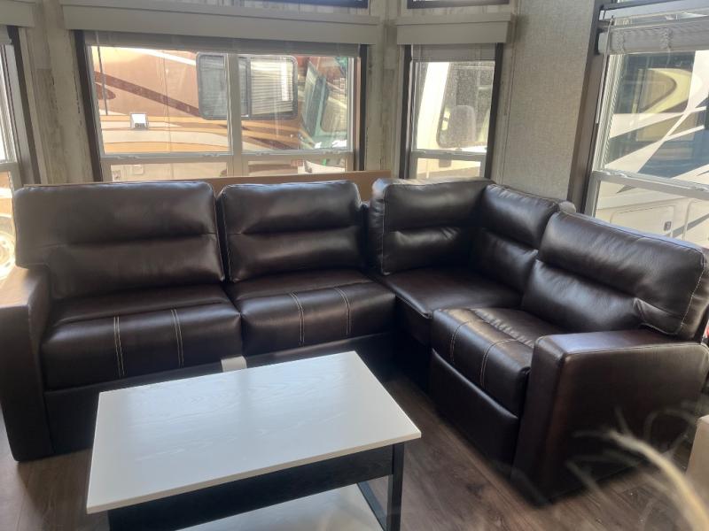 This park model with a loft is sure to make you feel right at home. This area will be perfect for little ones or storage of luggage and gear. The rear sunken bedroom includes a queen bed and dual nightstands for your book and glasses. Stay fresh each day with the one-piece tub/shower, and you can store your necessities in the lighted medicine cabinet. The living area includes a queen hide-a-bed sleeper sofa and a recliner for seating and sleeping space. You will love how much counter space you have in the kitchen, and the four burner cooktop will allow you to cook up any meal you have planned. You may also like to choose model 100162 that features a flat floor bedroom!
