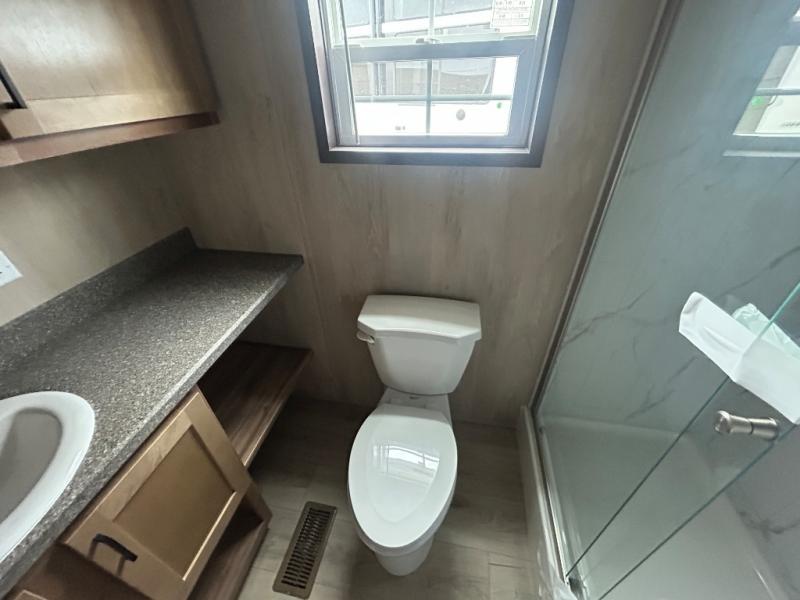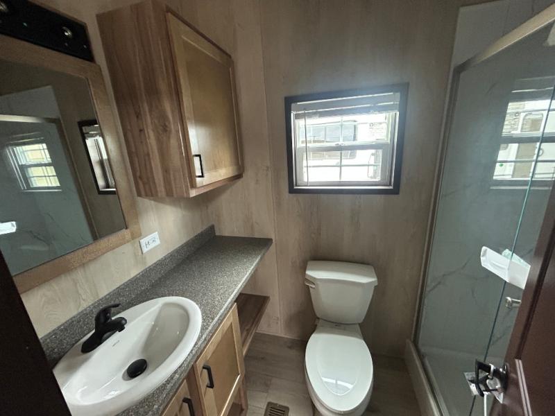 With any Country Manor park model by Fairmont you will enjoy years of use and memories thanks to the solid construction materials, such as an Owens Corning architectural shingled roof, a woven shepweave underbelly, a HomeGuard exterior weather house wrap wind barrier, and more! The Kinro windows will allow plenty of natural light in, and the residential crown molding will give that touch of luxury. Each model includes stainless steel Whirlpool appliances, high pressure dual laminated countertops and backsplash, and European style hidden cabinet hinges. These models also feature 1/2" residential textured drywall cathedral ceilings for better insulation and sound proofing, and the three decor choices will allow you to customize the interior to your liking.