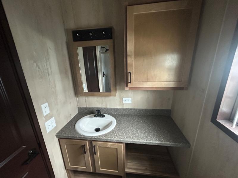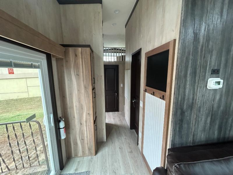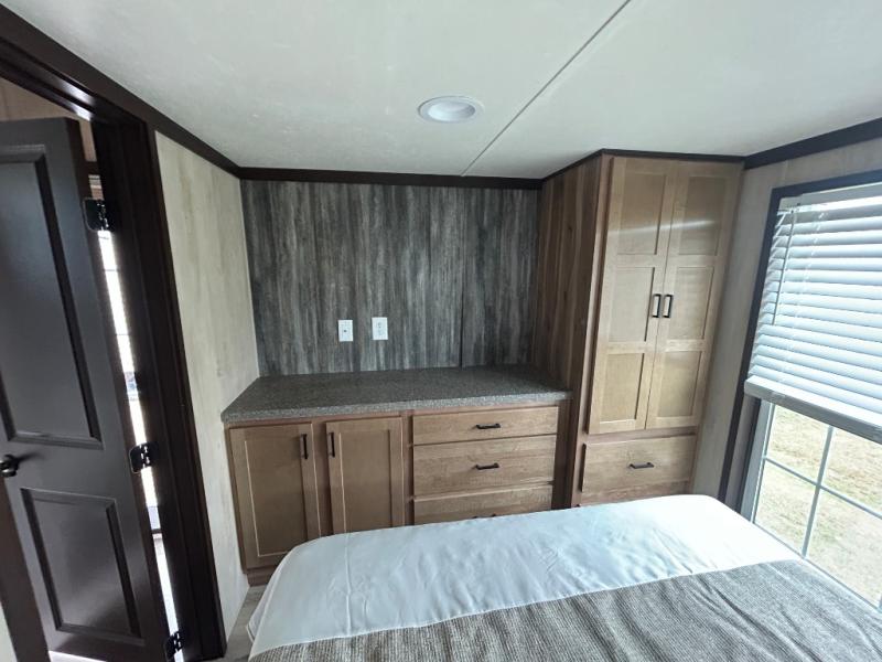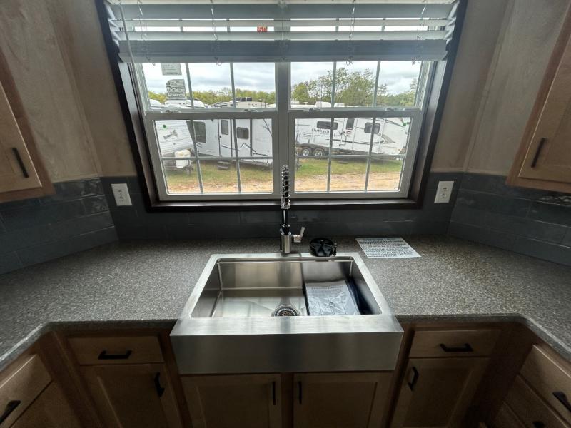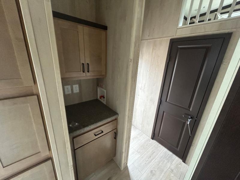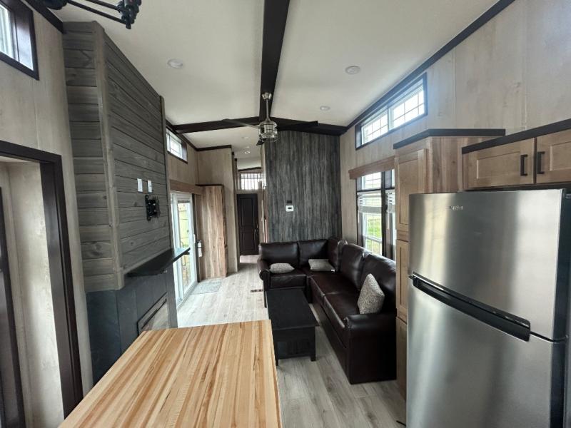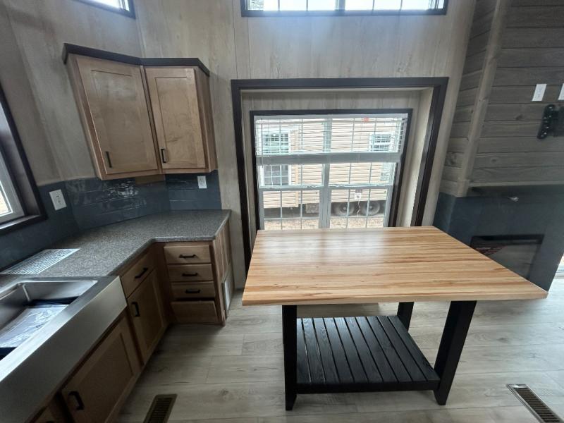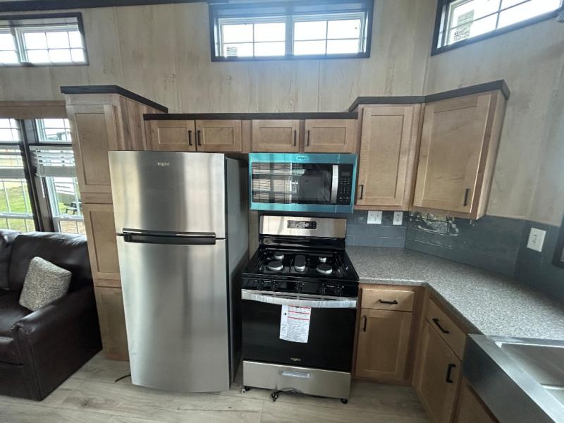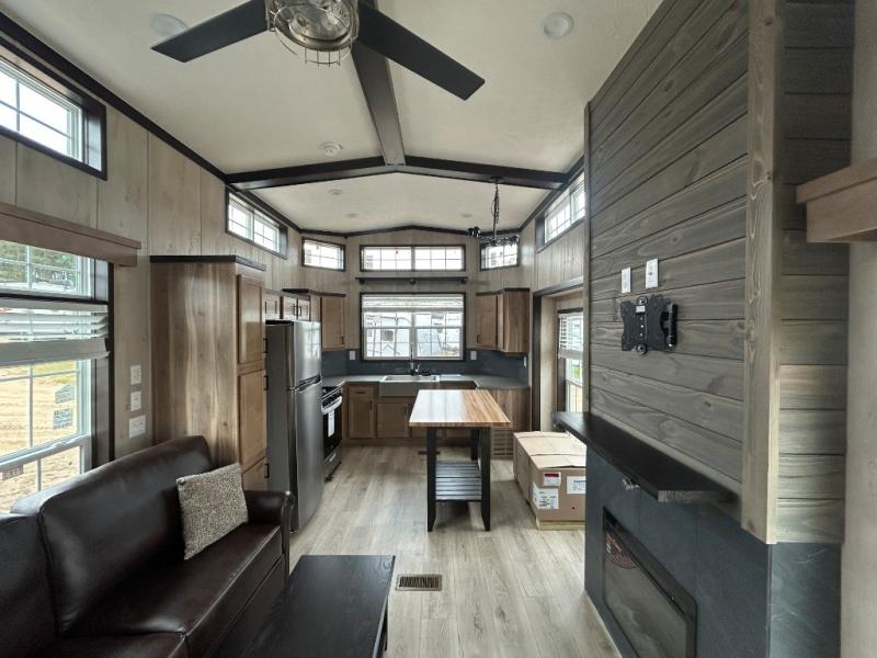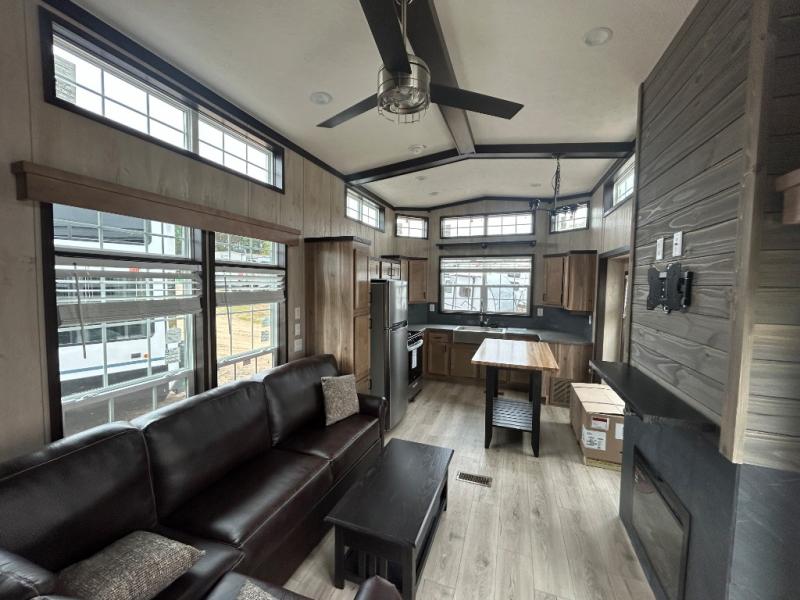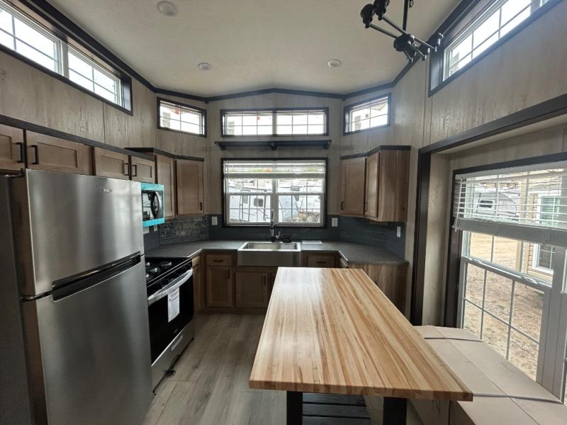 Head out on adventure in this spacious park model. You will love the front kitchen with tons of counter space and a four burner cooktop to prepare meals at. There is an entertainment center where you can add a TV, and the kitchen island will provide more counter space. This model includes a pantry to store dry goods and snacks, a chalkboard the little ones are sure to love, and a space to add an optional washer and dryer prep if you choose. Don't let this model pass you by!