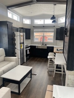 Head out on adventure in this spacious park model. You will love the front kitchen with tons of counter space and a four burner cooktop to prepare meals at. There is an entertainment center where you can add a TV, and the kitchen island will provide more counter space. This model includes a pantry to store dry goods and snacks, a chalkboard the little ones are sure to love, and a space to add an optional washer and dryer prep if you choose. Don't let this model pass you by!