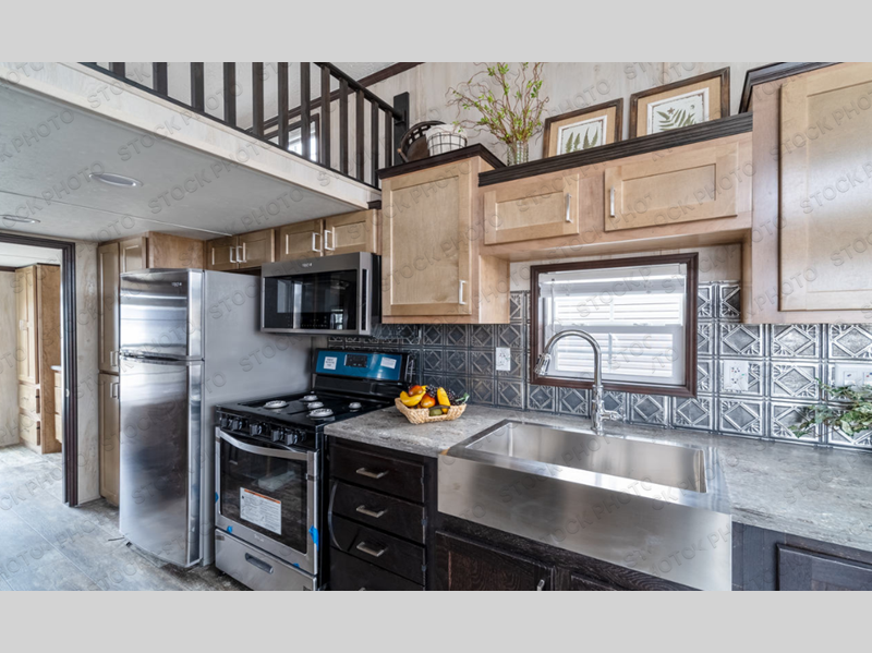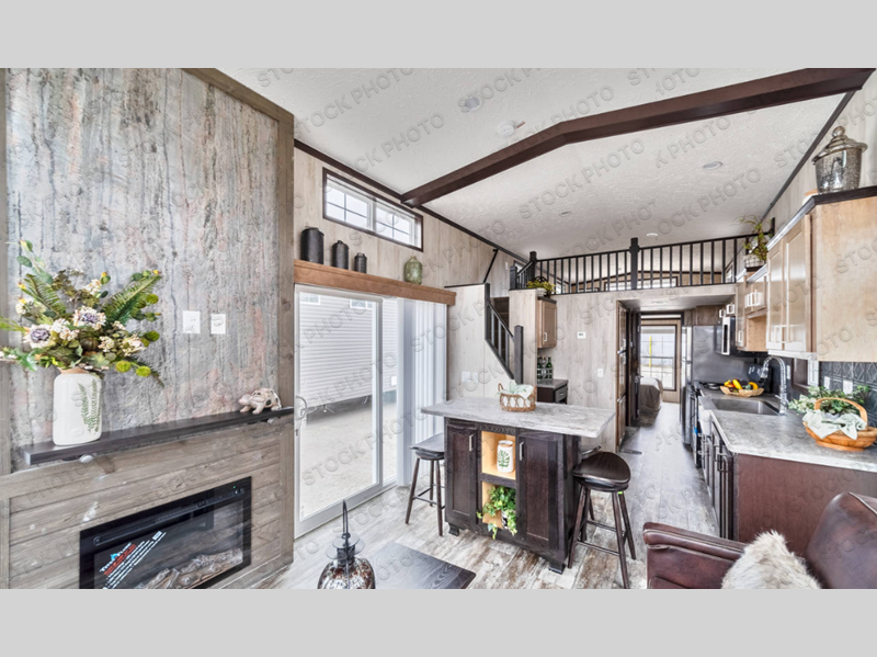 Wherever you decide to park this model, you are sure to feel right at home. The spacious front living area will be a favorite place to hang out with loved ones, and the kitchen island will provide extra counter space to prep meals. The full bath includes a lighted medicine cabinet, a one-piece tub/shower, plus an exhaust fan to keep everything fresh. You and your spouse will love the rear bedroom with its queen bed and pillowtop mattress, plus there is a large wardrobe and nightstands on either side of the bed. Head up the stairs to find the loft which will be great for little ones or storage!