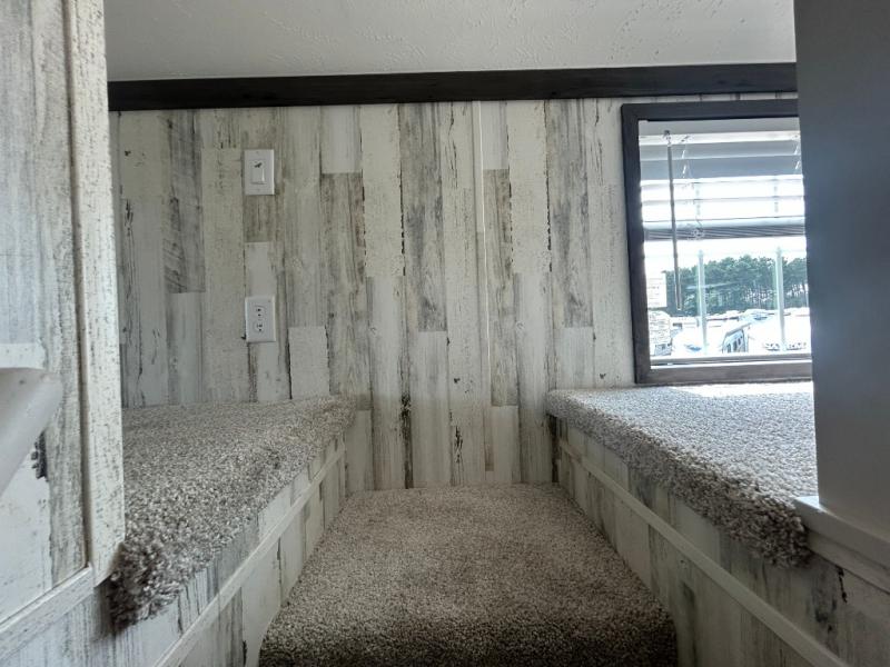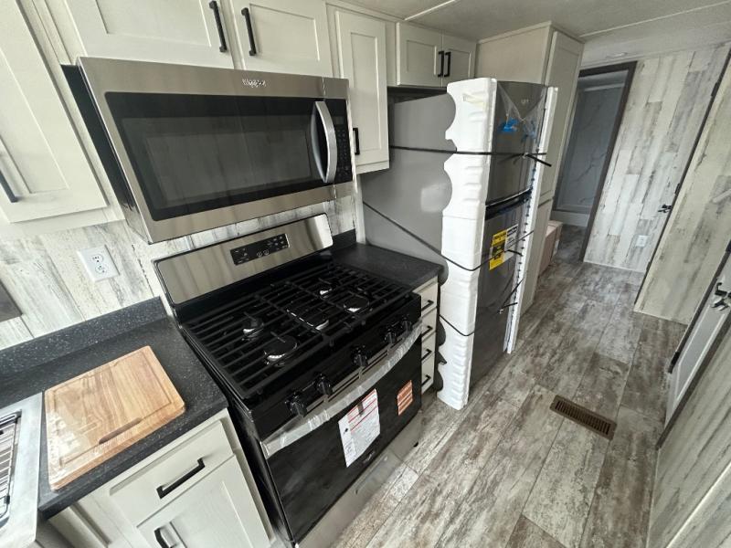 This park model is perfect when camping with friends or making this your home away from home. There are two private bedrooms with storage space, a full bath where everyone can freshen up, plus a loft with two loft areas for the little ones. The kitchen will allow the cook to cook meals each day, and the pantry will be perfect for paper goods and snacks. Once dinner is made, relax in the front living area!
