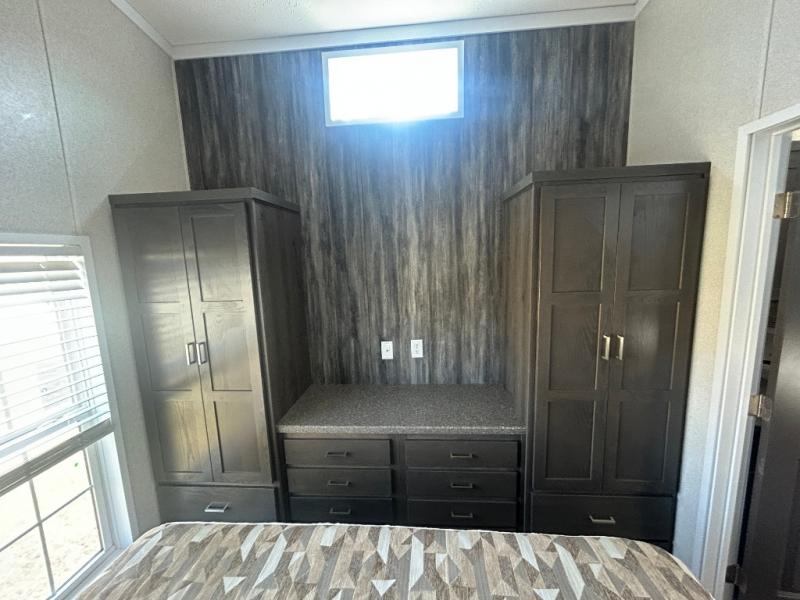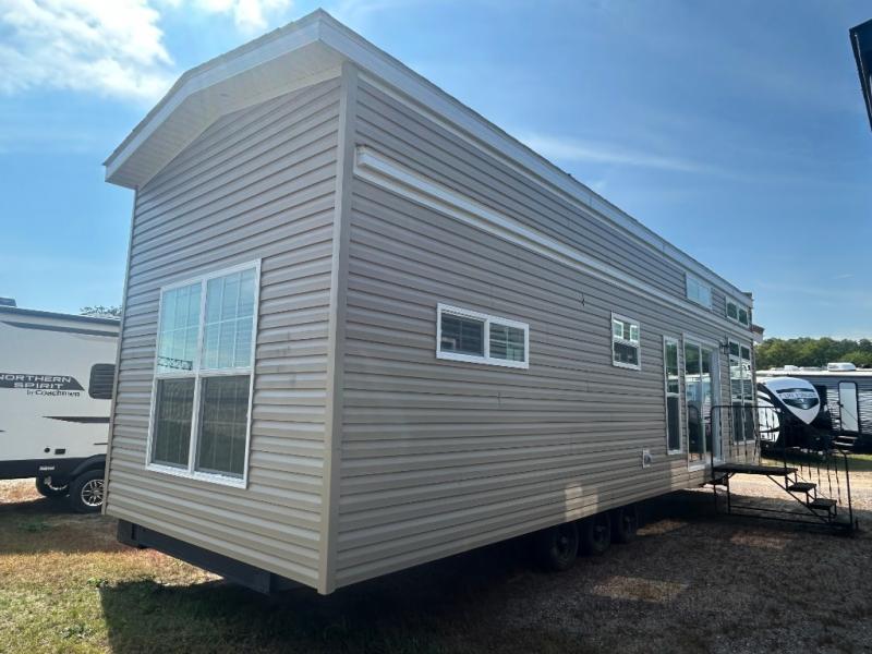 With any Country Manor park model by Fairmont you will enjoy years of use and memories thanks to the solid construction materials, such as an Owens Corning architectural shingled roof, a woven shepweave underbelly, a HomeGuard exterior weather house wrap wind barrier, and more! The Kinro windows will allow plenty of natural light in, and the residential crown molding will give that touch of luxury. Each model includes stainless steel Whirlpool appliances, high pressure dual laminated countertops and backsplash, and European style hidden cabinet hinges. These models also feature 1/2" residential textured drywall cathedral ceilings for better insulation and sound proofing, and the three decor choices will allow you to customize the interior to your liking.