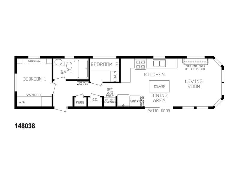 • Movable/Freestanding Island (per plan) • 13.5K BTU A/C • Dishwasher