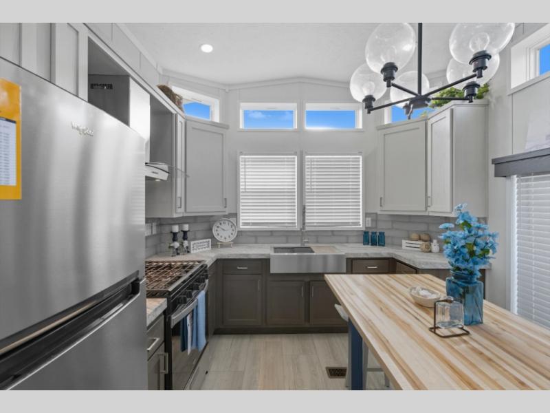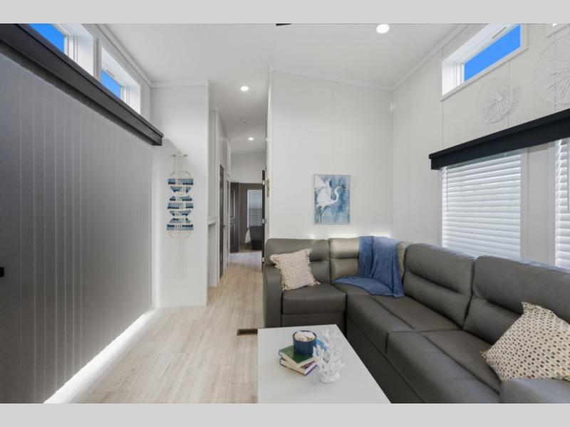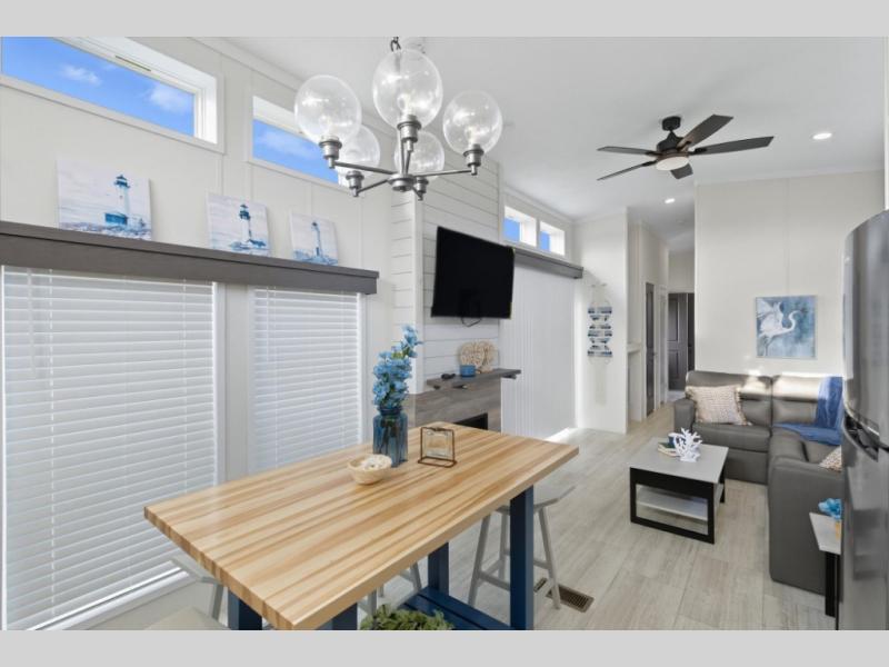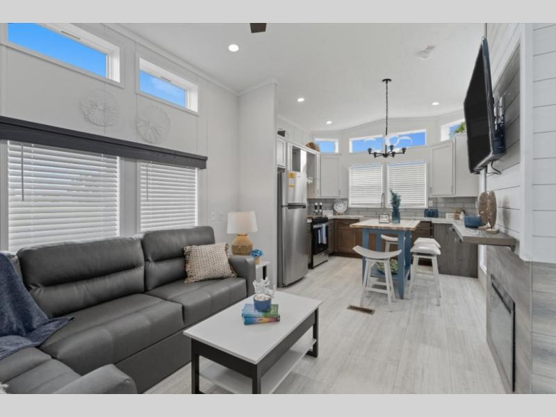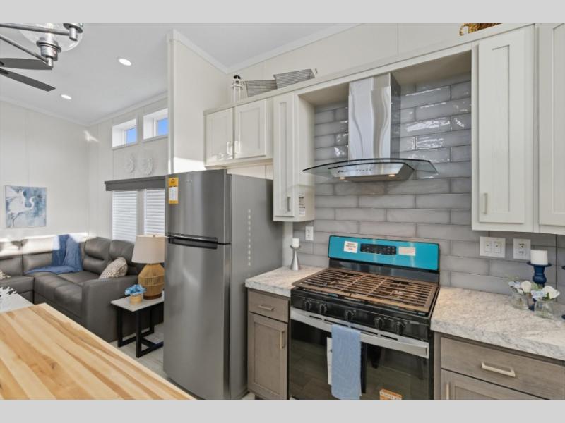 Inside, every detail showcases residential-grade quality and fine craftsmanship. From solid hardwood cabinetry and designer trim packages to high-end flooring, LED lighting, and premium fixtures, each space feels warm, bright, and refined. Full-size appliances, tile backsplash options, and spacious layouts — often with lofts, sunken bedrooms, and open-concept living areas — make these models as functional as they are beautiful.