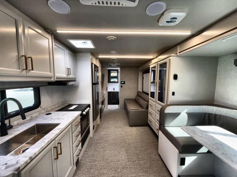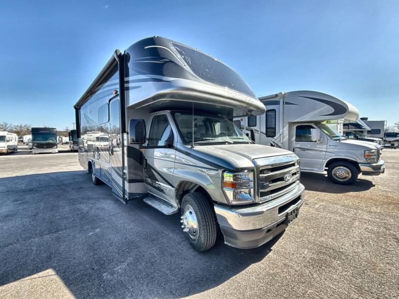 With any Altitude Class C gas motorhome by Fleetwood RV, you will enjoy unrivaled performance, unbeatable storage, and luxury at every turn! You will love the journey just as much as the destination with a Ford 7.3L V8 engine and a 6-speed automatic transmission. Each model features a fully encased aerodynamic inspired front bunk cap, tuff-ply thermal polyolefin engineered vinyl composite roofing, and modern exterior vinyl graphics. There are also oversized exterior storage compartments, a premium tankless water heater, and a 1000w upgraded inverter to keep you going. The durable marine grade flooring will stand up over the test of time, and you're going to love the premium galley appliances!
