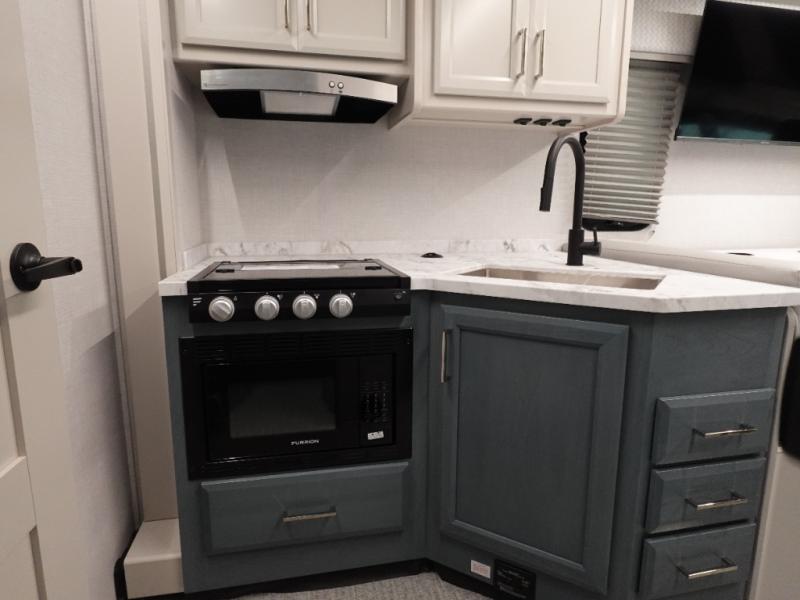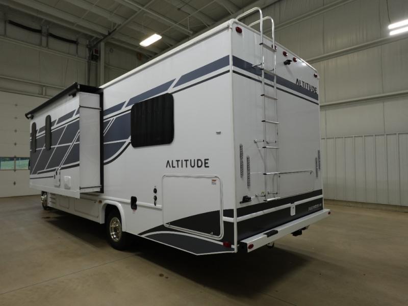 With any Altitude Class C gas motorhome by Fleetwood RV, you will enjoy unrivaled performance, unbeatable storage, and luxury at every turn! You will love the journey just as much as the destination with reclining back captain's chairs and side view cameras, plus there is a Ford 7.3L V8 engine for power you can feel. Each model features painted steel frame construction with a Powerlock System ll that interlocks the walls to the roof for added durability, along with Vacu-Bond aluminum framed sidewalls, roof, and floor. Outside, you'll find automatic hydraulic leveling jacks, patio lighting, slam latch luggage door handles, and a Winegard Air 360+ that will allow you to stay connected as you travel. Head inside to find Surf-X countertops, slide out fascia with coordinating interior wood color, hidden hinge cabinet doors, kitchen backsplash, and many more comforts!