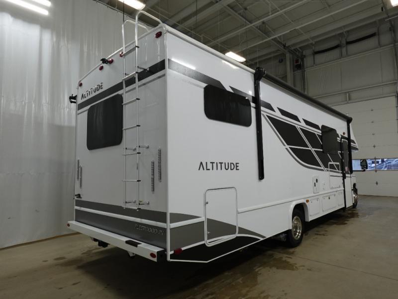 With any Altitude Class C gas motorhome by Fleetwood RV, you will enjoy unrivaled performance, unbeatable storage, and luxury at every turn! You will love the journey just as much as the destination with a Ford 7.3L V8 engine and a 6-speed automatic transmission. Each model features a fully encased aerodynamic inspired front bunk cap, tuff-ply thermal polyolefin engineered vinyl composite roofing, and modern exterior vinyl graphics. There are also oversized exterior storage compartments, a premium tankless water heater, and a 1000w upgraded inverter to keep you going. The durable marine grade flooring will stand up over the test of time, and you're going to love the premium galley appliances!