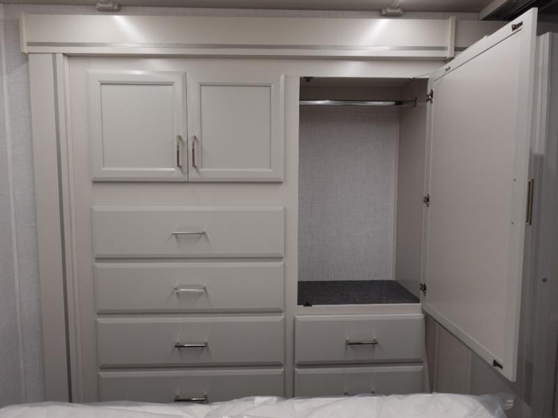 Escape to the adventure with this incredible Class C motorhome. Perfect for all families, this motorhome offers many sleeping spaces like a bunk over cab, and a queen bed, the last one located in the rear private bedroom which boasts overhead cabinets, storage and drawers, and a wardrobe giving you and your partner plenty of space to store your clothes and belongings. Enjoy a refreshing time in the convenient full bathroom, equipped with the essentials to bathe after a long day of adventures. The combined kitchen/living area has everything you need to make you feel at home, starting with a three-burner cooktop, refrigerator, and a microwave. There is also a pantry, dream dinette, theater seats, and an LED TV, the perfect feature for having an entertaining time.
