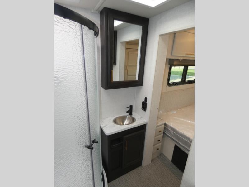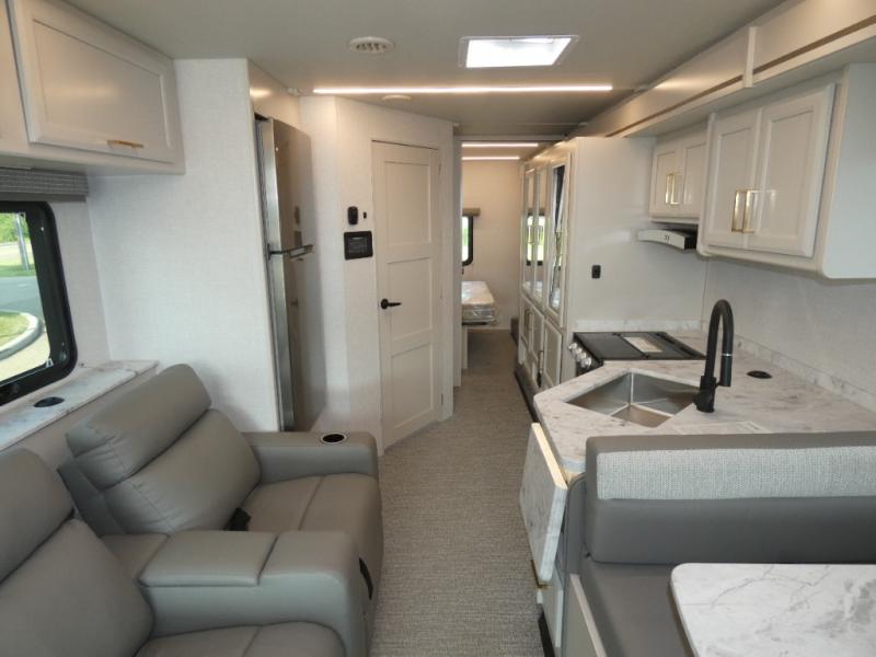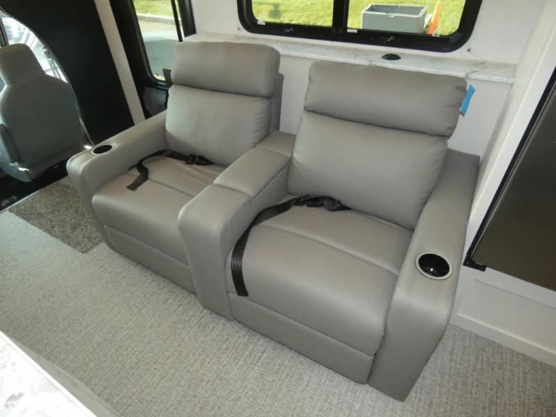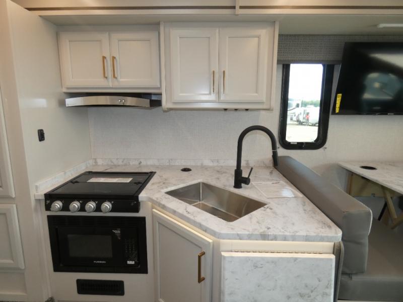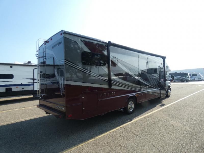 With any Altitude Class C gas motorhome by Fleetwood RV, you will enjoy unrivaled performance, unbeatable storage, and luxury at every turn! You will love the journey just as much as the destination with reclining back captain's chairs and side view cameras, plus there is a Ford 7.3L V8 engine for power you can feel. Each model features painted steel frame construction with a Powerlock System ll that interlocks the walls to the roof for added durability, along with Vacu-Bond aluminum framed sidewalls, roof, and floor. Outside, you'll find automatic hydraulic leveling jacks, patio lighting, slam latch luggage door handles, and a Winegard Air 360+ that will allow you to stay connected as you travel. Head inside to find Surf-X countertops, slide out fascia with coordinating interior wood color, hidden hinge cabinet doors, kitchen backsplash, and many more comforts!