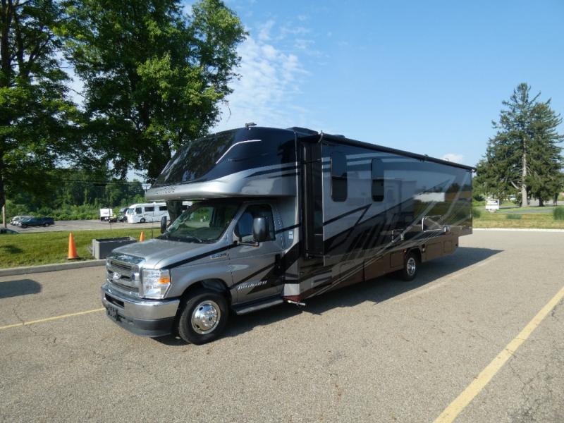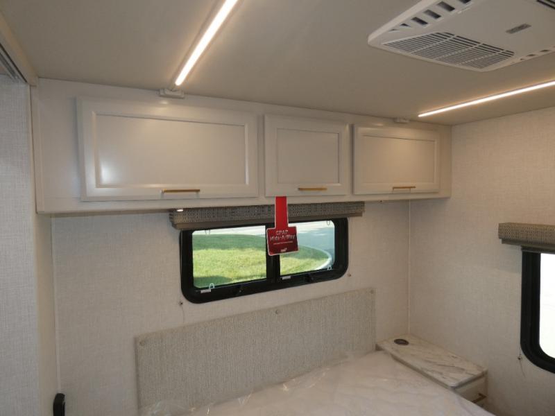 Escape to the adventure with this incredible Class C motorhome. Perfect for all families, this motorhome offers many sleeping spaces like a bunk over cab, jackknife sofa, bunk beds, and a queen bed, the last one located in the rear private bedroom which boasts overhead cabinets, storage and drawers, and a wardrobe giving you and your partner plenty of space to store your clothes and belongings. Enjoy a refreshing time in the convenient full bathroom, equipped with the essentials to bathe after a long day of adventures. The combined kitchen/living area has everything you need to make you feel at home, starting with a three-burner cooktop, refrigerator, microwave, pantry, dream dinette, a sofa, and an LED TV, the perfect feature for having an entertaining time.