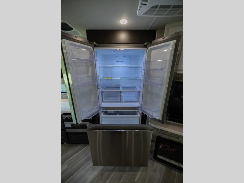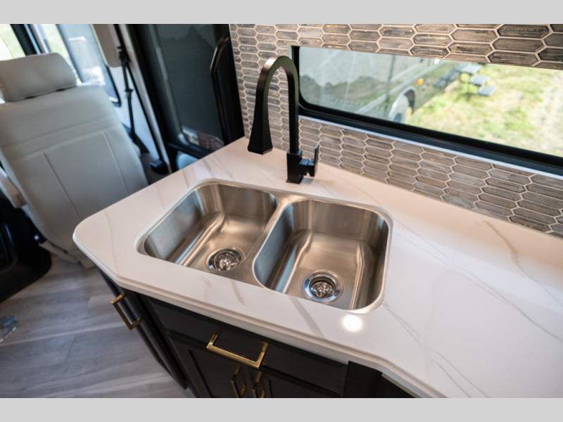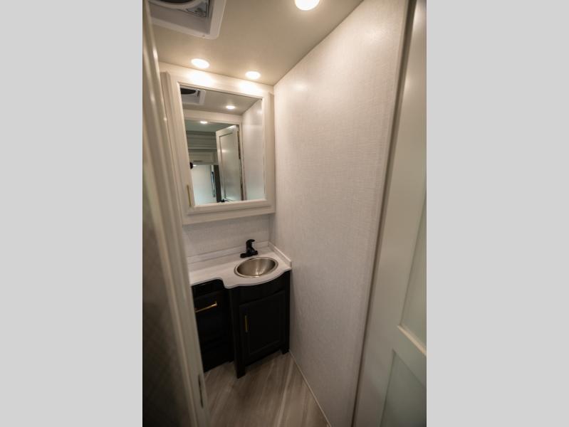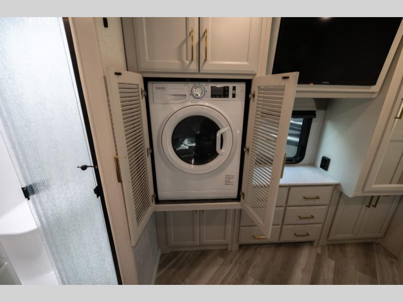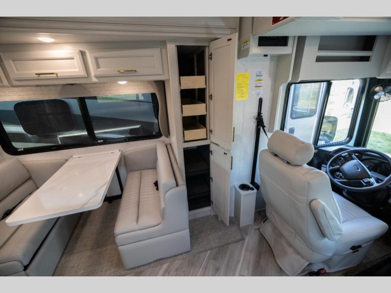 When you are ready to travel the countryside, this coach will get you there in comfort with luxury and residential features that you deserve. The driver and passenger will love the automotive style dash with color monitor and workstation, plus the pedestal table in between. Once you have setup for the evening, you might enjoy reclining back in the chairs or sitting on the jackknife sofa that offers guests a place to stay the night, along with the rest EZ dinette and the optional Hide-A-Loft power overhead bunk if you added that feature. Your guests can use the mid-coach half bath while you have your own master suite with a king bed slide and storage, plus a full rear bathroom all to yourself.
