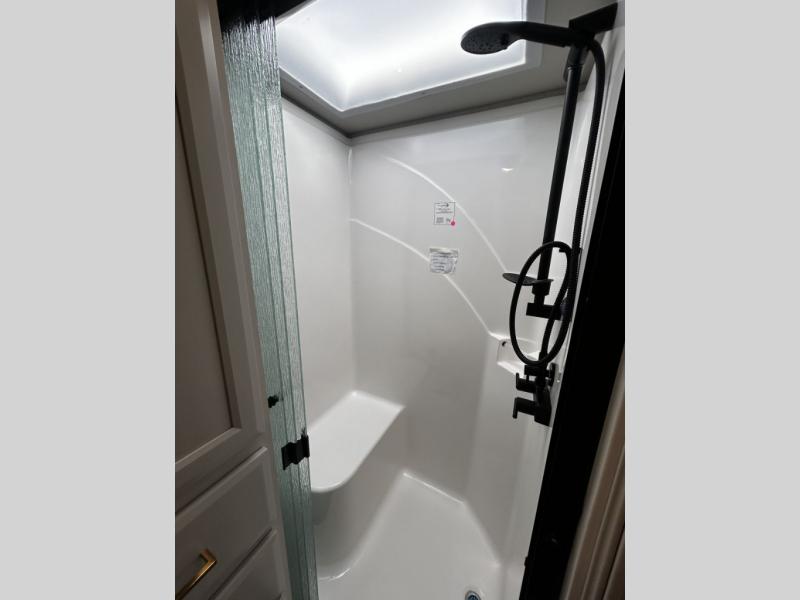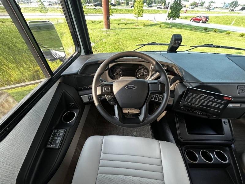 With any Bounder Class A gas motorhome by Fleetwood, you can travel in luxury and style with the power you desire to enjoy the ride as much as the destination. Beginning with the Power Platform Ford chassis, the enhanced safety features such as remote, power-heated mirrors with turn indicators and side cameras, and the color monitor for side and rear cameras, traveling is made easy. There is also an automotive one-piece windshield, a 100W solar panel, and WiFi Ranger Sky4 that come standard. A 5.5kW Onan generator will keep you powered up and you'll find plenty of storage both inside and out for personal belongings, camp gear, and more. Inside you will love the look of the durable, hand-laid Tarkett flooring, the energy efficient LED flush mount ceiling lighting, and the fiberglass shower with a glass door. Choose a Bounder Class A gas coach to discover even more stand-out features!