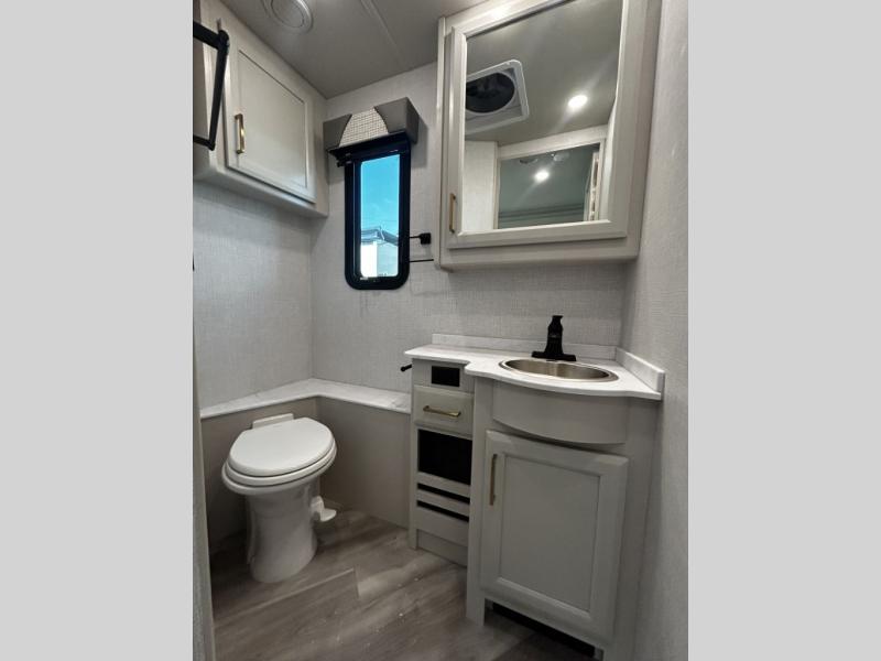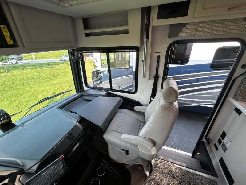 When you are ready to travel the countryside, this coach will get you there in comfort with luxury and residential features that you deserve. The driver and passenger will love the automotive style dash with color monitor and workstation, plus the pedestal table in between. Once you have setup for the evening, you might enjoy reclining back in the chairs or sitting on the jackknife sofa that offers guests a place to stay the night, along with the rest EZ dinette and the optional Hide-A-Loft power overhead bunk if you added that feature. Your guests can use the mid-coach half bath while you have your own master suite with a king bed slide and storage, plus a full rear bathroom all to yourself.