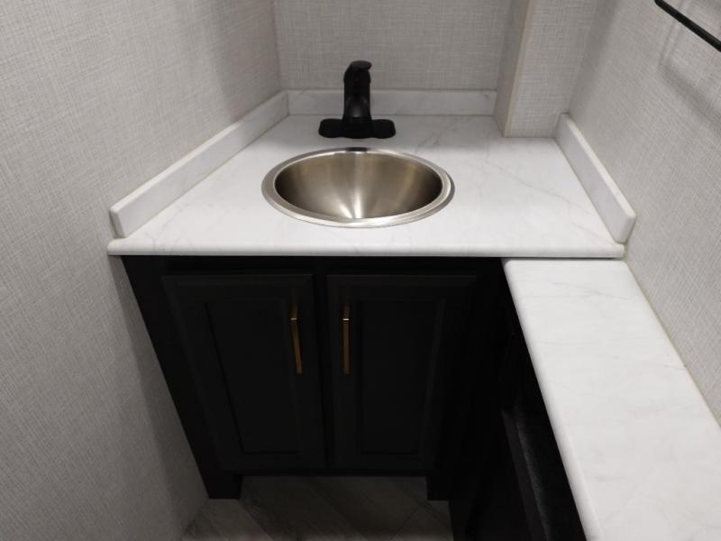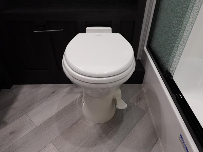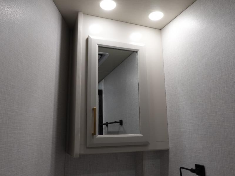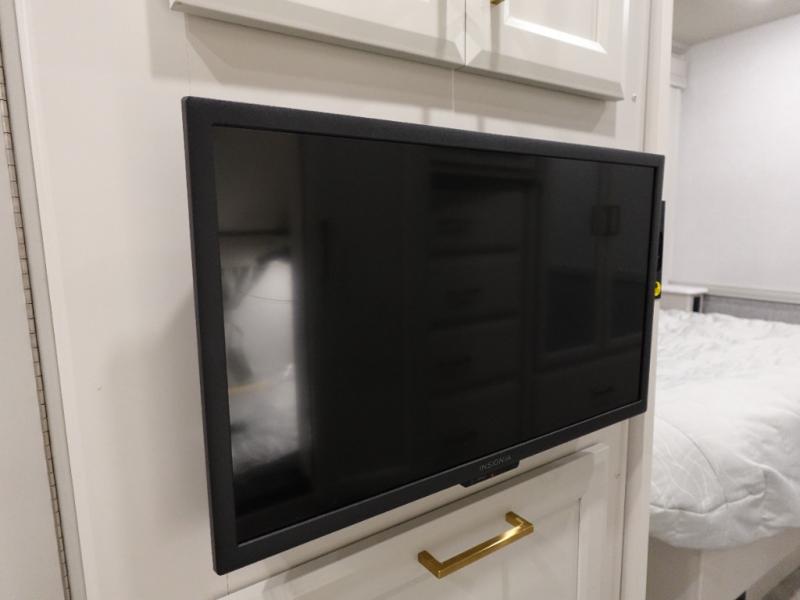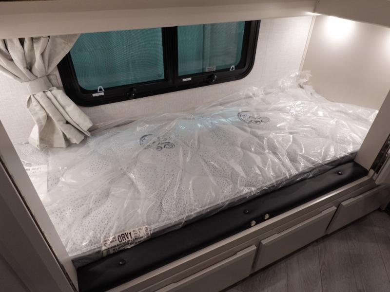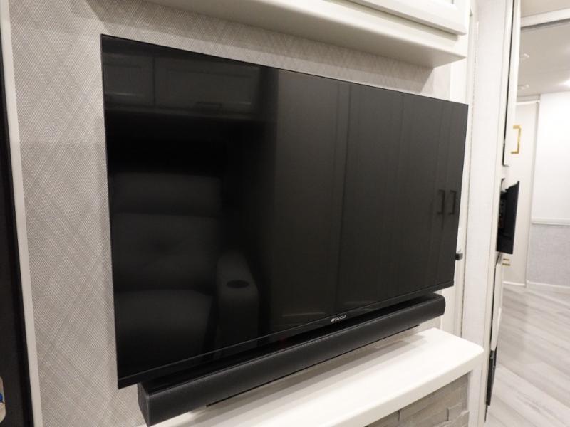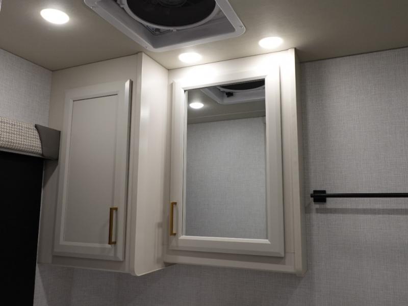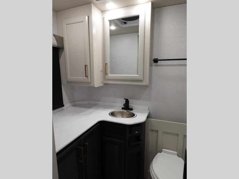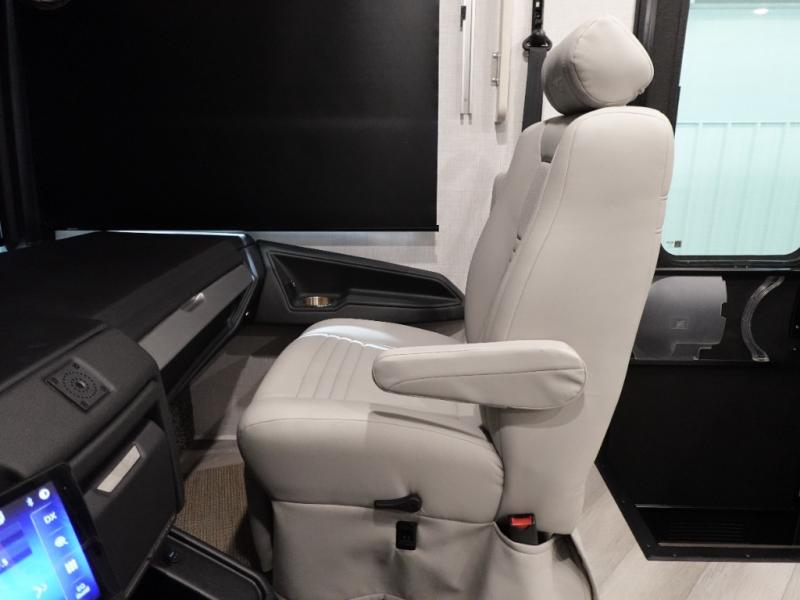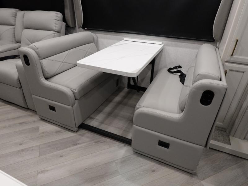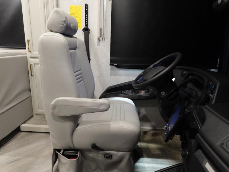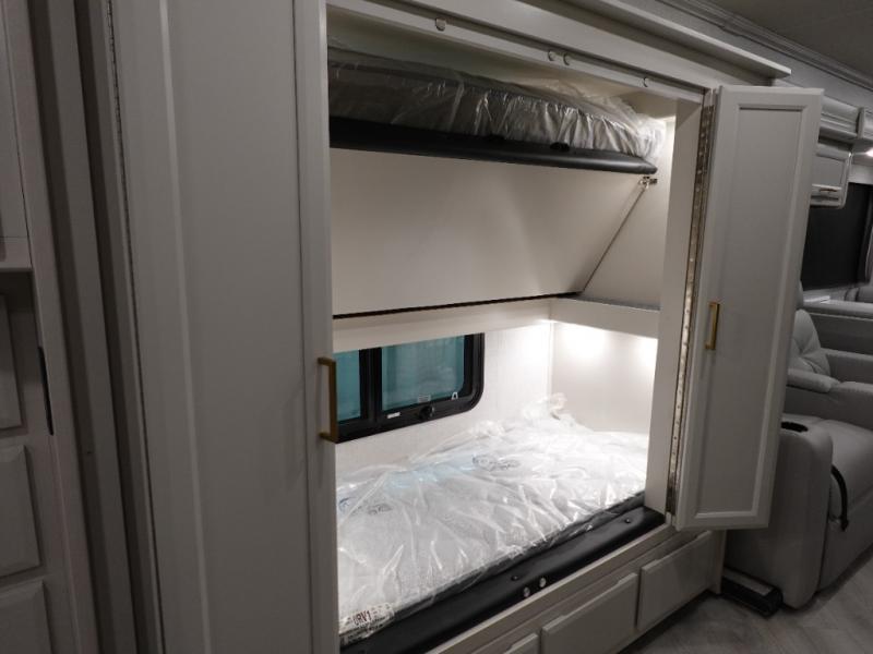 Luxurious, comfortable and spacious are just a few of the adjectives you will be thinking when you see this coach! There is a full-wall slide giving you plenty of interior space to move about, driver/passenger reclining, swivel seats with a pedestal table in between, and convertible bunk beds. You can configure the bunks as a wardrobe and seating space or a TV gaming center the kids are sure to love, and this space can be sectioned off for added privacy. There are two full bathrooms one with a 24" x 40" shower with a seat and another with a 30" x 38" shower with a seat; now that is convenience at its finest. The cook will have full kitchen amenities including a residential refrigerator and convection microwave, plus you can dine at the rest EZ dinette, offering even more sleeping space.