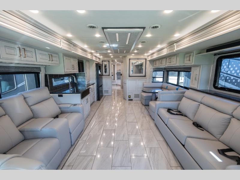 Trips across the country just got sweeter in this four slide out coach that can sleep nine people each night. The rear bunk beds can convert to a wardrobe, and there additional storage here for clothes and belongings. The master bedroom features a LED TV, a side-by-side washer and dryer, and a luxurious Encore Series king bed. This Discovery LXE includes everything you need each day to prepare meals for your crew, including a two burner induction cooktop, a convection microwave, plus a residential refrigerator with ice and water in the door. There are plenty of seating spaces to enjoy, including a U-shaped dinette, a sofa sleeper with a pull-out queen bed, and a sofa with ottomans!