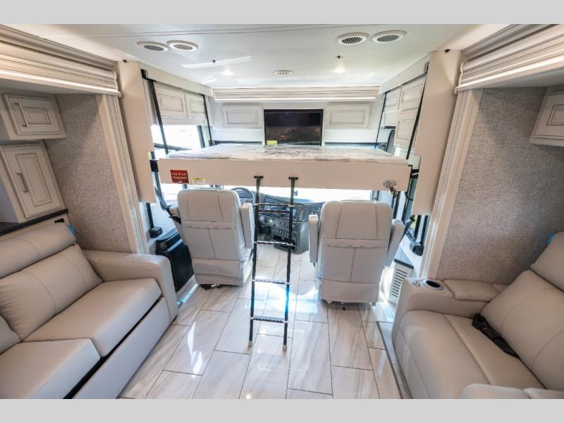 The Discovery LXE Class A diesel motorhomes by Fleetwood RV features a Freightliner XCM chassis for the ultimate in power, storage, and drivability. The swivel, recline, and heated captain's seats provide comfort at every turn, and you'll have an OptiView instrument panel, color backup monitor, and tuned SACHS® shocks for your peace of mind. Each coach includes full pass-through basement storage, automatic hydraulic leveling jacks, a four-color premier full-body paint, and automatic entrance steps to name a few exterior comforts. The interior will have you feeling right at home with its porcelain tile flooring, floor heat in the living area, hardwood cabinetry, and polished solid surface galley countertop with lighting. You can further customize your Discovery LXE coach by adding one or more of the many options offered, like the optional Hide-A-Loft power drop-down bunk, the optional Winegard In Motion satellite, or the second roof mounted awning!