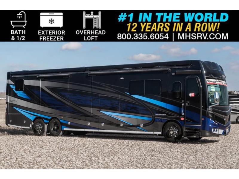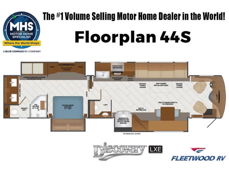 MSRP $711,913. New 2026 Fleetwood Discovery LXE 44S Bath & 1/2 for sale at Motor Home Specialist; the #1 Volume Selling Motor Home Dealership in the World. This Beautiful RV is approximately 44 feet in length and features 4 slides, king bed, washer and dryer, and large living area. The Fleetwood Discovery LXE boasts an impressive list of standard features king bed, fireplace, Cummins L9 diesel engine, Freightliner Freedom Bridge Custom Chassis, Allison 3000 MH transmission, tire pressure monitoring system, heated fresh water and holding tank compartments, washer and dryer, molded-fiberglass one-piece roof, automatic hydraulic leveling jacks, 7-way round tow connection, automotive one-piece windshield and large living area. This well-appointed RV also features the optional drop-down twin loft, technology package, blackout wheels, U-shaped dinette, heated tile floor, Starlink satellite system, exterior freezer, rear roof mounted awning, window awning package, roof A/C w/ condensation drains, blind spot detection, and 90” 2nd full basement tray. **Unit Not California CARB Compliant and Cannot be Registered in California**. Shop a huge selection of luxury diesel pusher motorhomes all at 1 location! Choose from American Coach Eagle – Dream – Entegra Coach Cornerstone – Anthem – Aspire – Fleetwood Palisade – Discovery LXE – Holiday Rambler Armada – Foretravel Realm – Foretravel Realm Presidential and more. We also buy and sell quality pre-owned models such Newmar King Aire – Essex – London Aire – Mountain Aire – Dutch Star - Tiffin Zephyr – Allegro Bus – Phaeton – Prevost Liberty Lady – Millennium - Marathon – Newell and much more. Visit MHSRV.com for our complete line-up and the sale prices that have made us the #1 volume selling motor home dealership in the world 12 years in a row! For additional details on this unit and our entire inventory including brochures, window sticker, videos, photos, reviews & testimonials as well as additional information about Motor Home Specialist and our manufacturers please visit us at MHSRV.com or call 800-335-6054. At Motor Home Specialist, we DO NOT charge any prep or orientation fees like you will find at other dealerships. All sale prices include a 200-point inspection, interior & exterior wash, detail service and a fully automated high-pressure rain booth test and coach wash that is a standout service unlike that of any other in the industry. You will also receive a thorough coach orientation with an MHSRV technician, a night stay in our delivery park featuring landscaped and covered pads with full hook-ups and much more! Read Thousands upon Thousands of 5-Star Reviews at MHSRV.com and See What They Had to Say About Their Experience at Motor Home Specialist. WHY PAY MORE? WHY SETTLE FOR LESS?