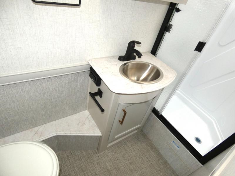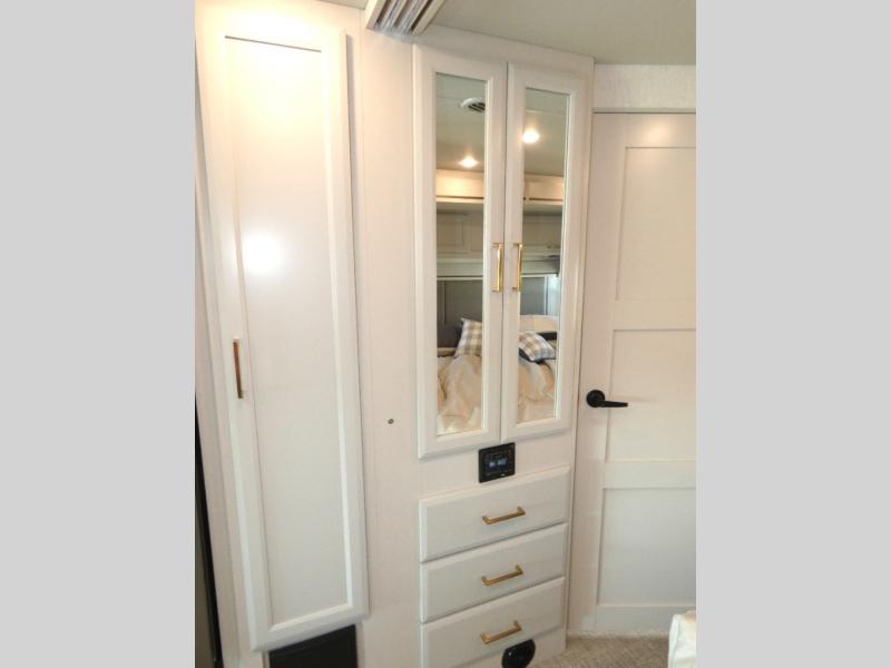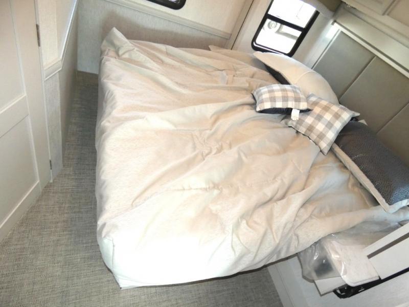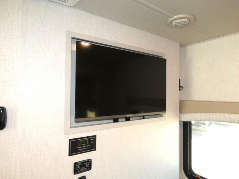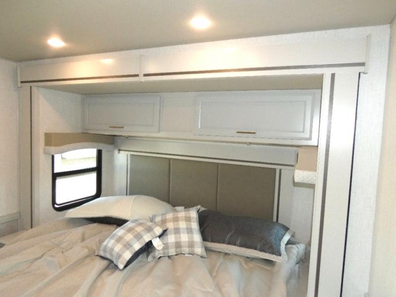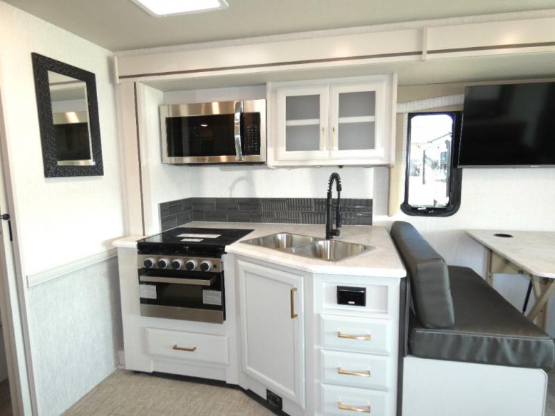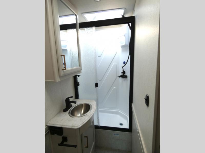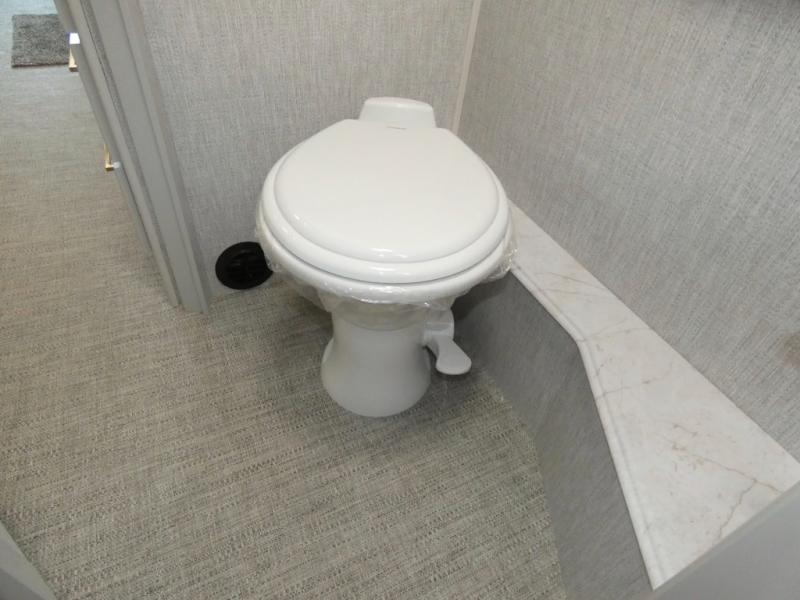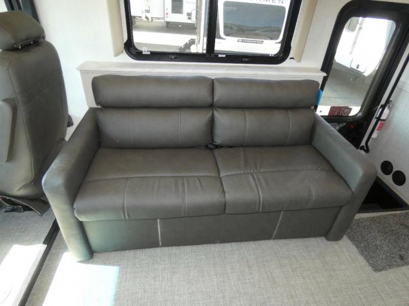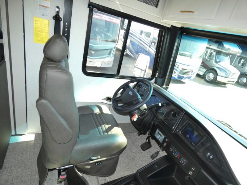 If you're hoping for a luxurious getaway, look no further than this Flair Class A gas motorhome! You can sleep in peace in your own private bedroom, and the full bathroom with shower skylight is directly connected to the bedroom for easy morning routines. Next to the residential refrigerator is a pantry, so you have great kitchen storage, and you also have a three-burner range to cook those foods on. A jackknife sofa gives you lounging and sleeping space, and you have a Wi-Fi Ranger Sky4 to keep connected to the modern world.