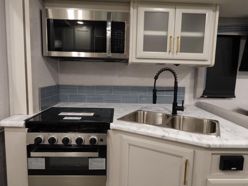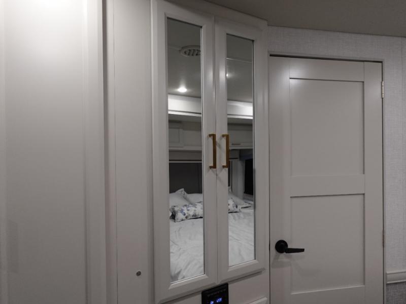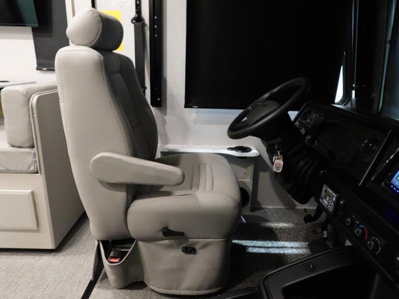 If you're hoping for a luxurious getaway, look no further than this Flair Class A gas motorhome! You can sleep in peace in your own private bedroom, and the full bathroom with shower skylight is directly connected to the bedroom for easy morning routines. Next to the residential refrigerator is a pantry, so you have great kitchen storage, and you also have a three-burner range to cook those foods on.