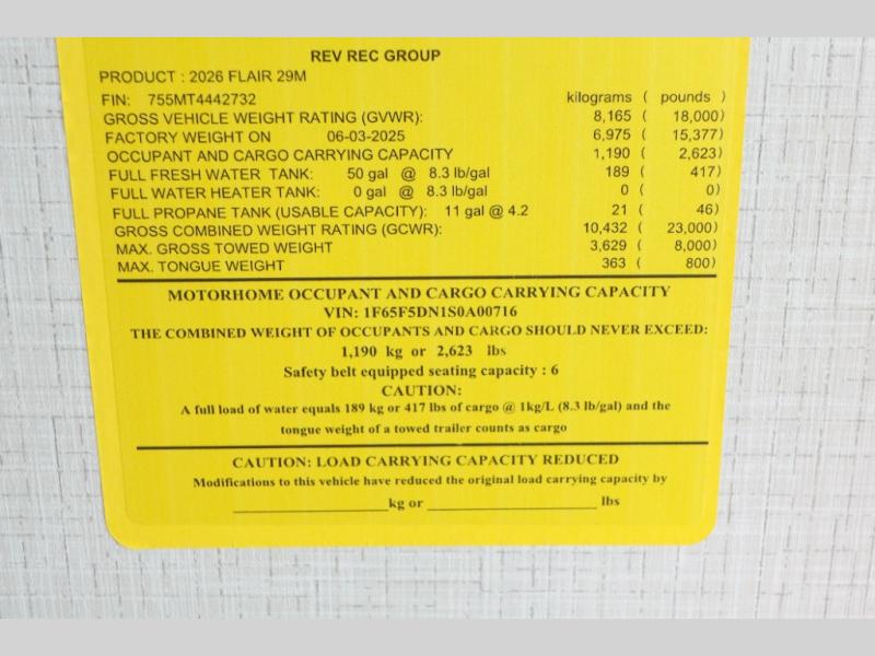New 2026 Fleetwood RV Flair 29M Motor Home Class A