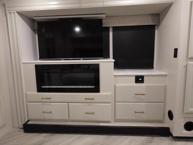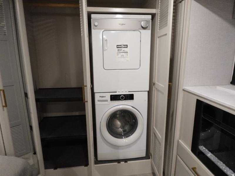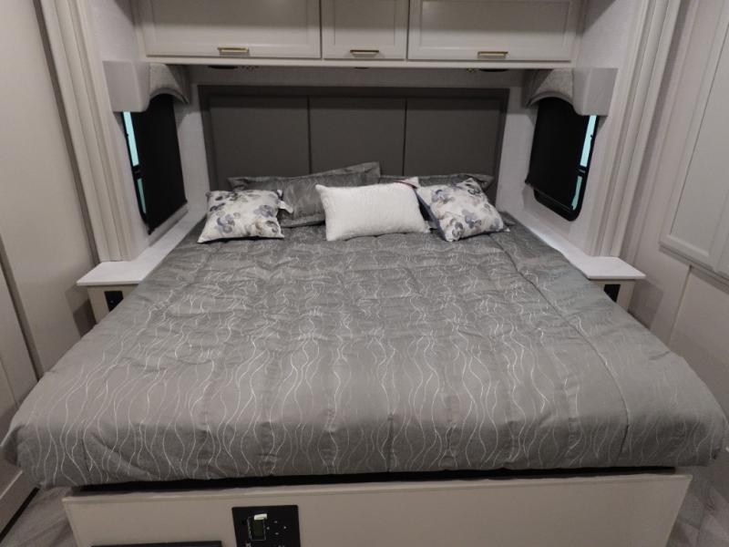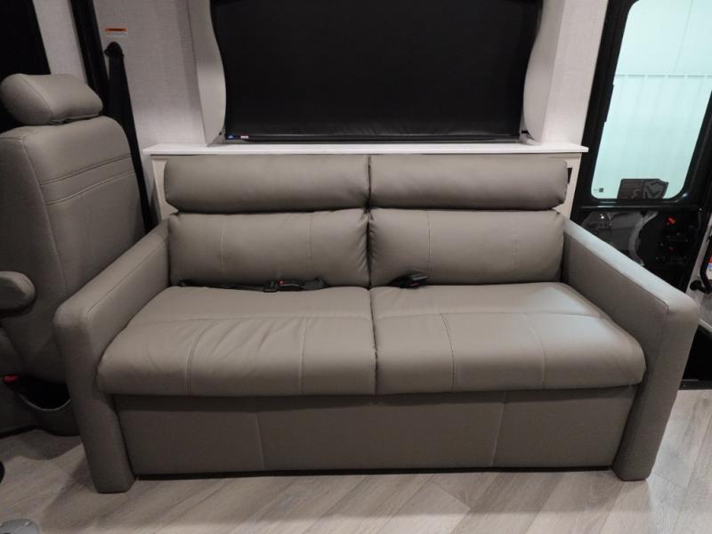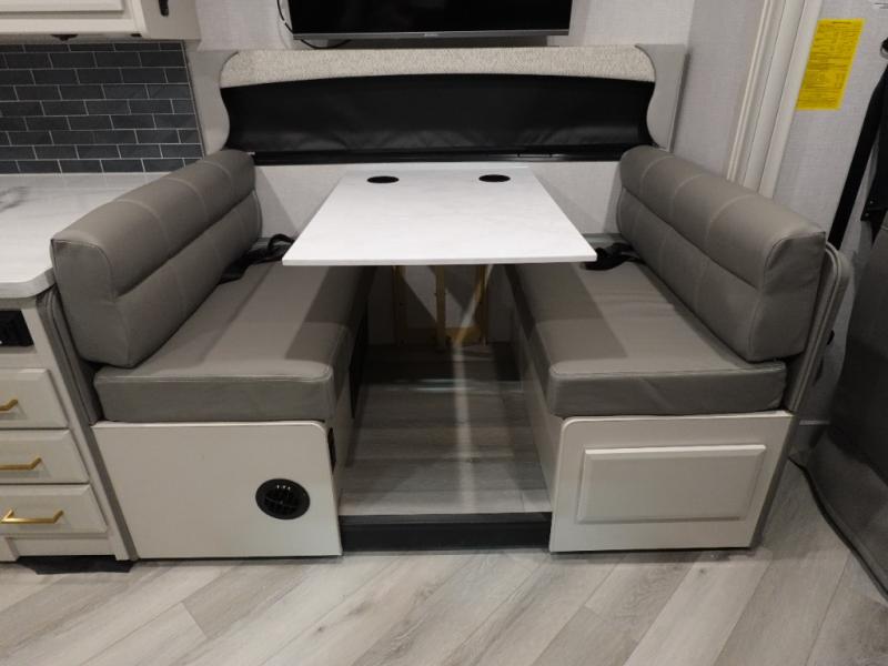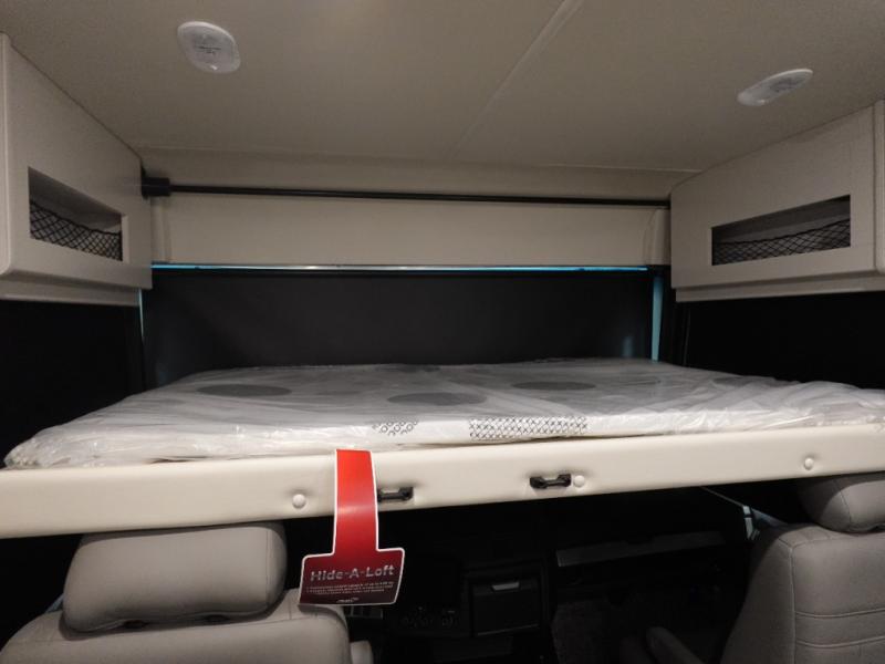If you never leave home without your sense of adventure, then you should make this Fortis Class A gas motorhome your home because it allows adventure to travel with you! The interior is luxurious and comfortable with its Serenity Series RV king bed, full-wall slide, residential refrigerator, and LED TVs. You will gain extra sleeping space when you utilize the dream dinette and jackknife sofa as beds, and there is a Hide-A-Loft drop-down bunk above the cab for kids who think bunk beds are the best.
