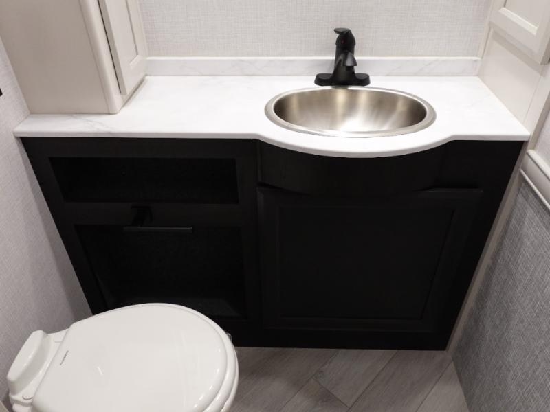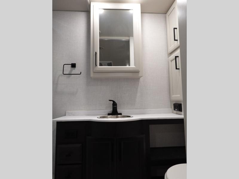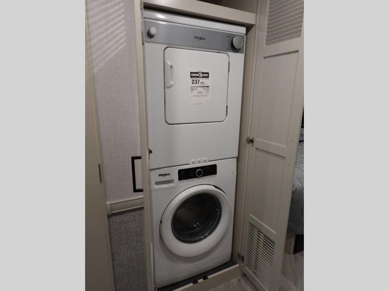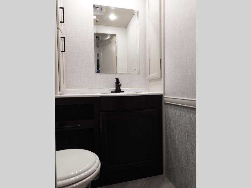 Get your bags, pack them up in the pass-through basement storage, and head out with this Fortis Class A gas motorhome! You can cook up a big pot of oatmeal on the three-burner cooktop each morning, and you can heat up leftovers for lunch in the stainless steel convection microwave. Store all of the ingredients to prepare these delicious meals in the residential refrigerator and pantry. Space won't be a problem because the full-wall slide and the RV king bed slide add more room to this coach, and there are plenty of bathroom amenities with the full bathroom for you back in the master suite as well as the half bathroom in the main living area for everyone else.